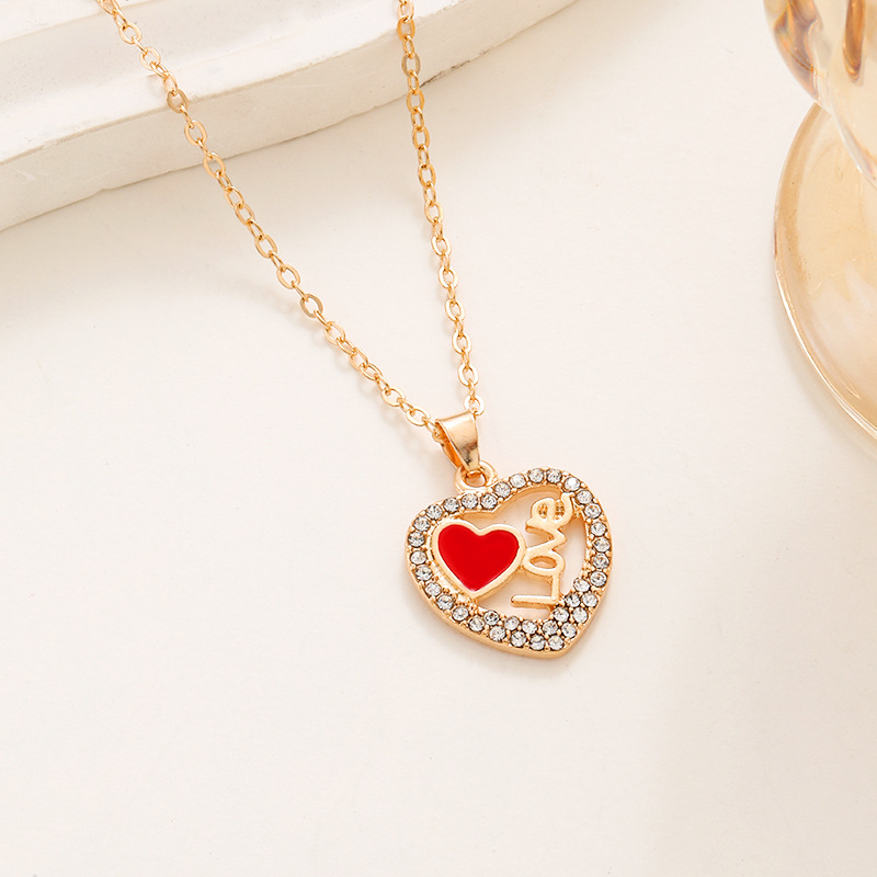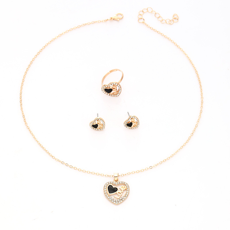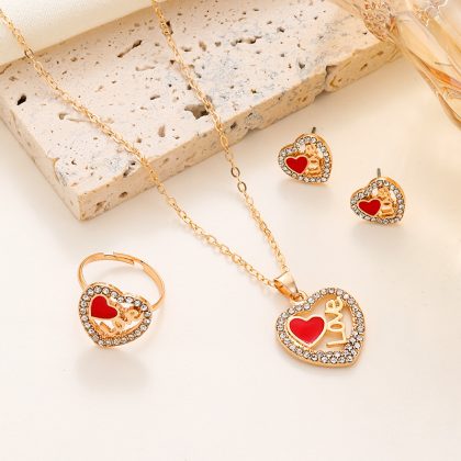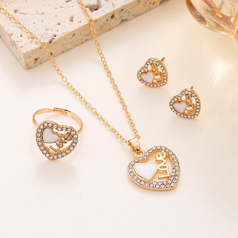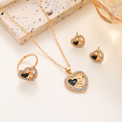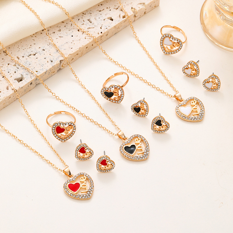 European and American ins love jewelry suit cross-border fashion diamond LOVE letters peach heart necklace earrings ring 3 pieces set