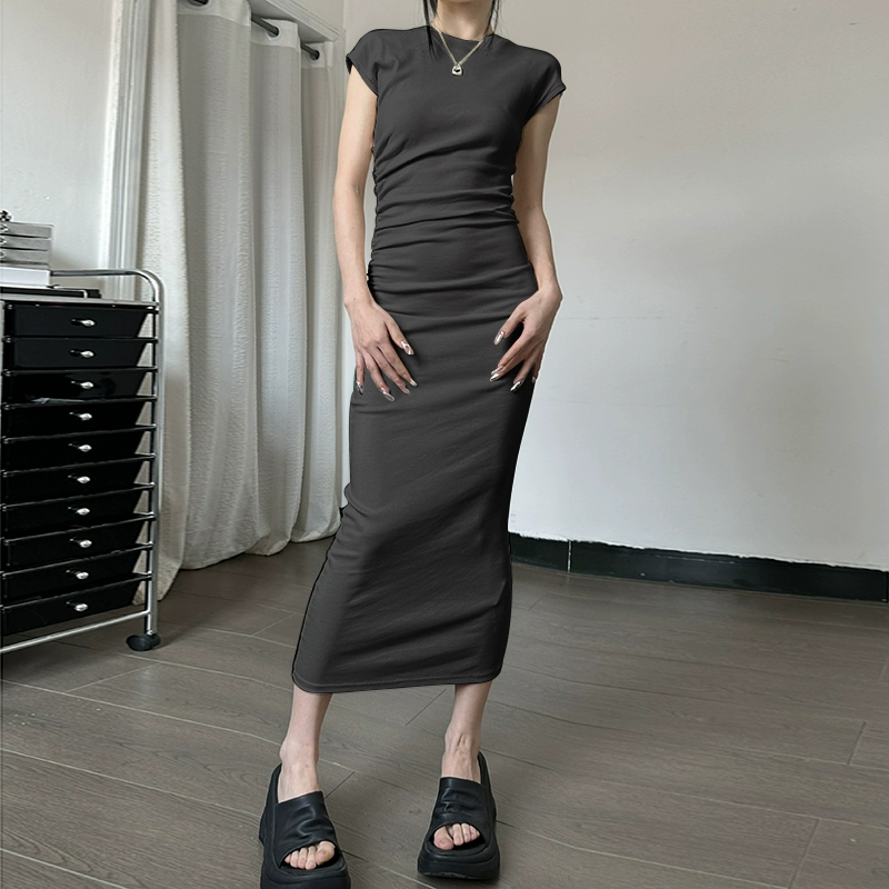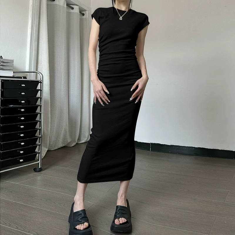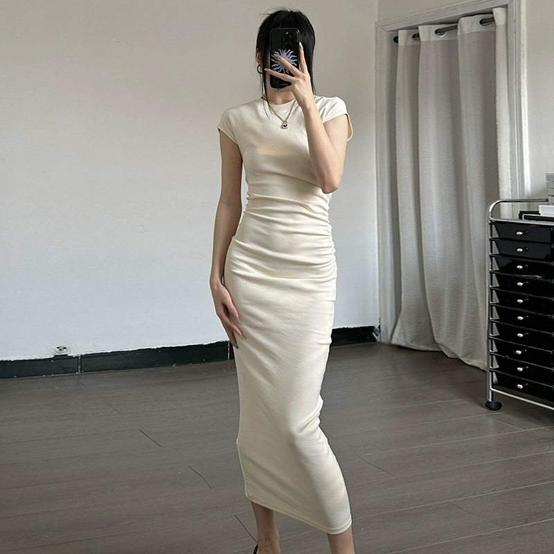 | nameOriginal | European and American ins solid color draped hip short-sleeved dress |