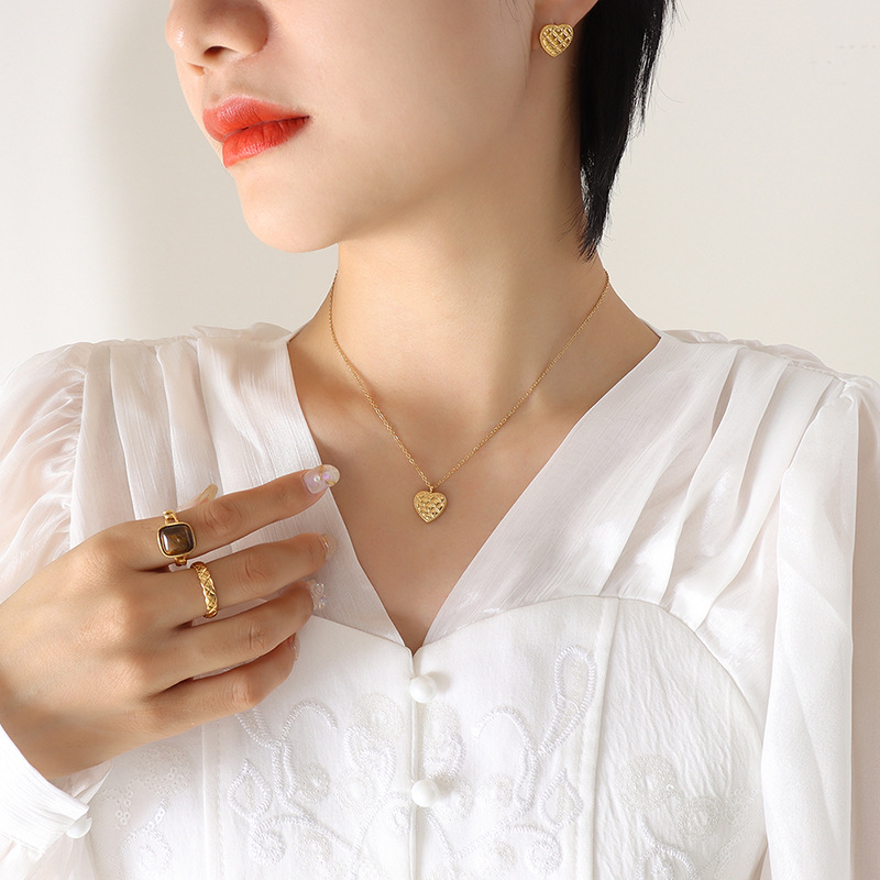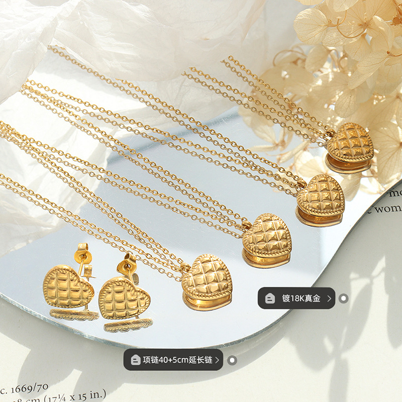 | nameOriginal | European and American ins Style Fashionable Small All-Match Love Pendant Necklace Women's Titanium Steel Gold Plated Peach Heart Earrings Jewelry Set |