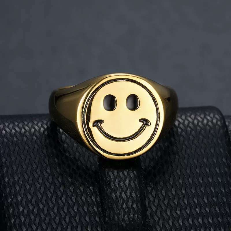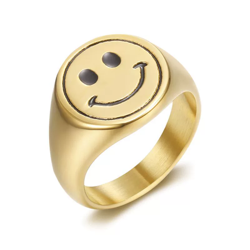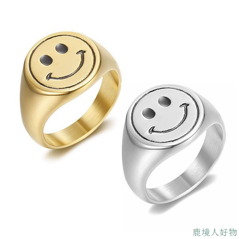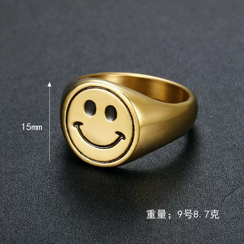 | nameOriginal | European and American ins style hip-hop fashion accessories stainless steel gold-plated glue smiley expression couple men and women rings |