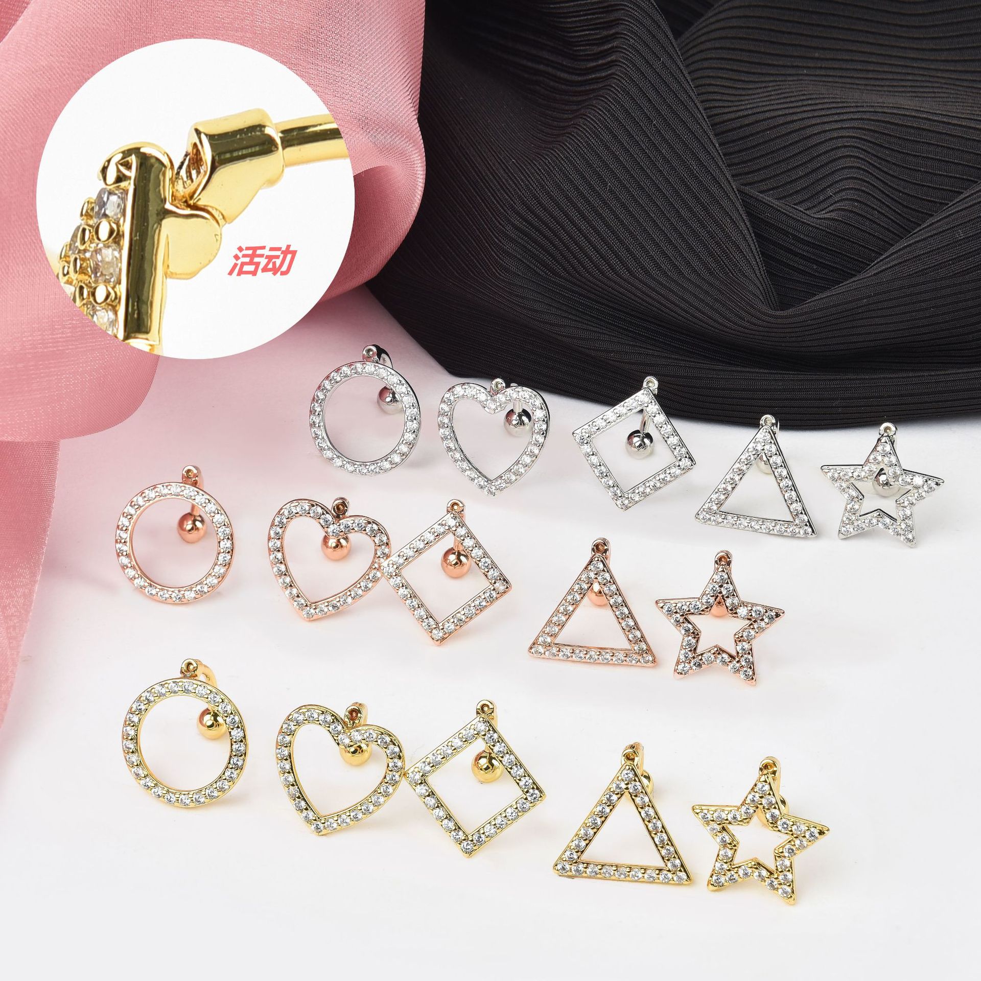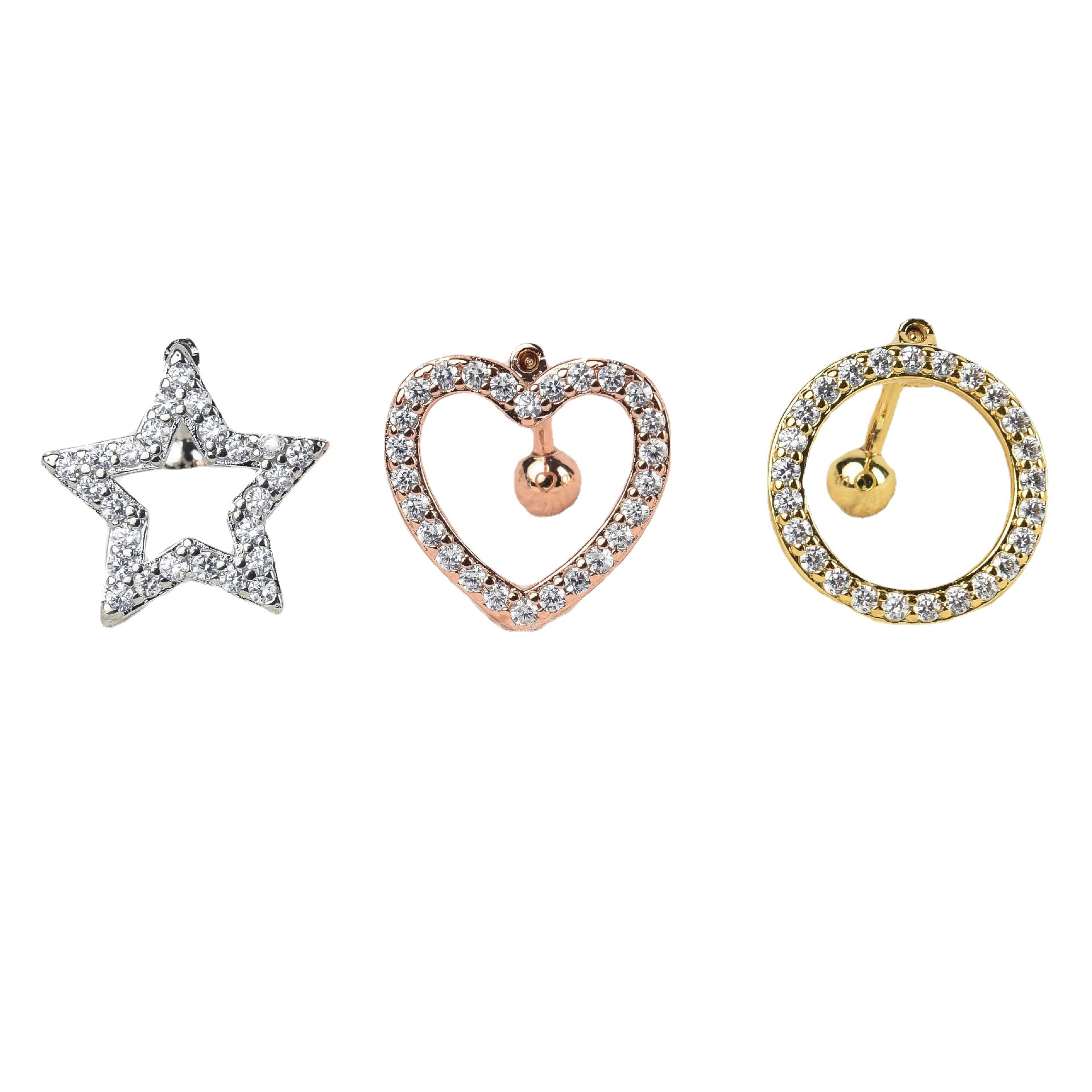 | nameOriginal | European and American inverted navel nail geometric zircon navel ring copper inlaid zirconium love five-star navel nail stainless steel puncture jewelry |