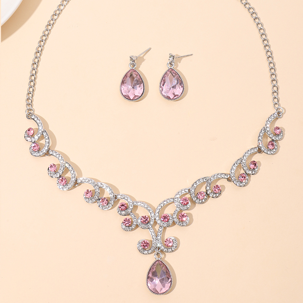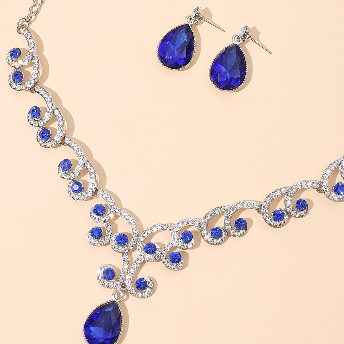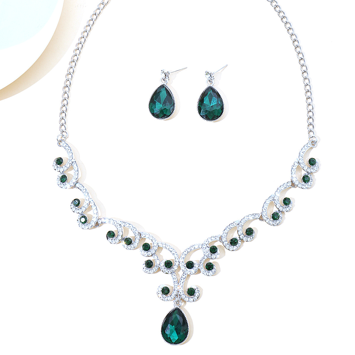 | nameOriginal | European and American Jewelry Chain Earrings Pendant Rhinestone Necklace Women's Jewelry Emerald Water Drops Fashion Bride Accessories Cross Border |