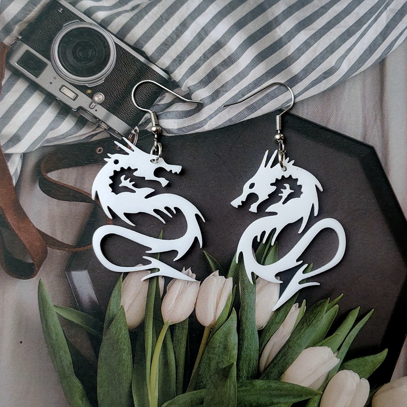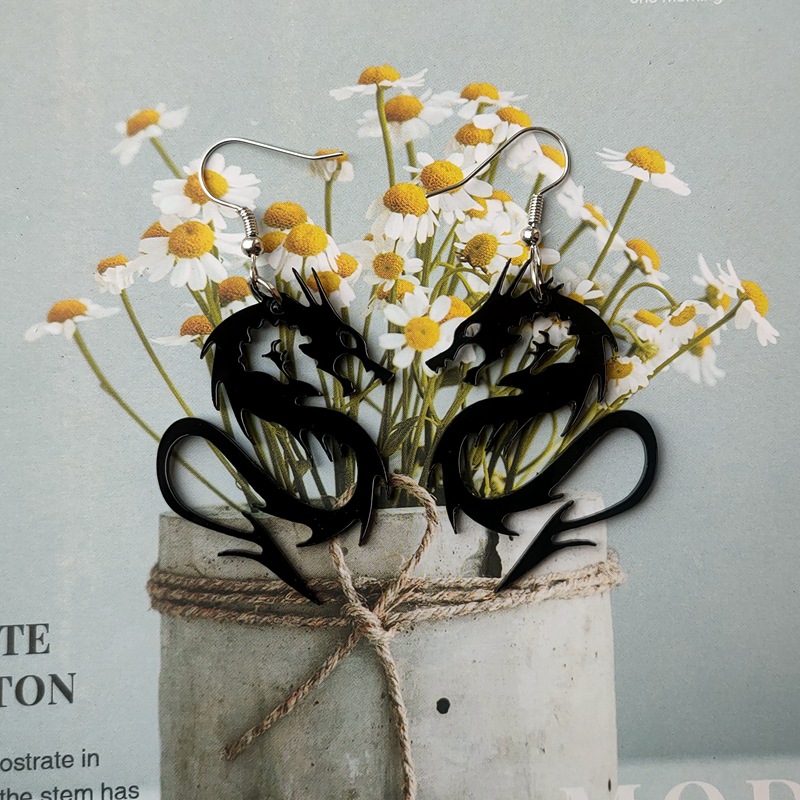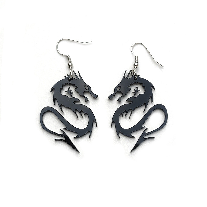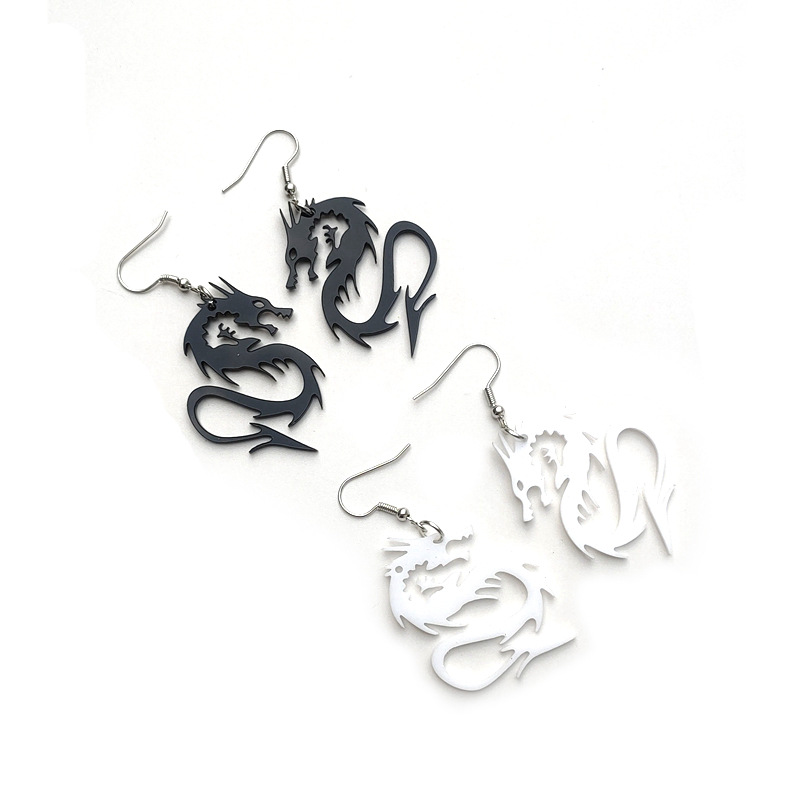 | nameOriginal | European and American jewelry cross-border personalized black and white domineering two-color dragon female ear hook acrylic cutting eardrops ear studs |