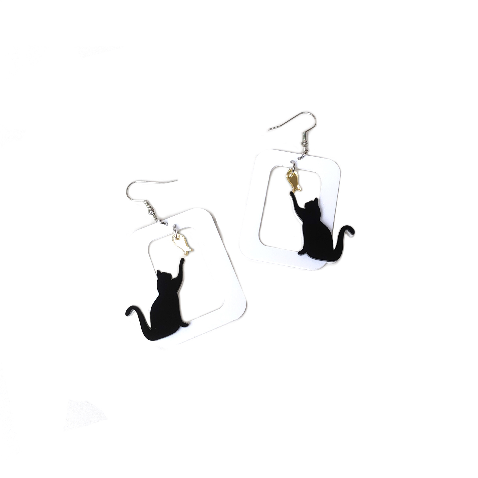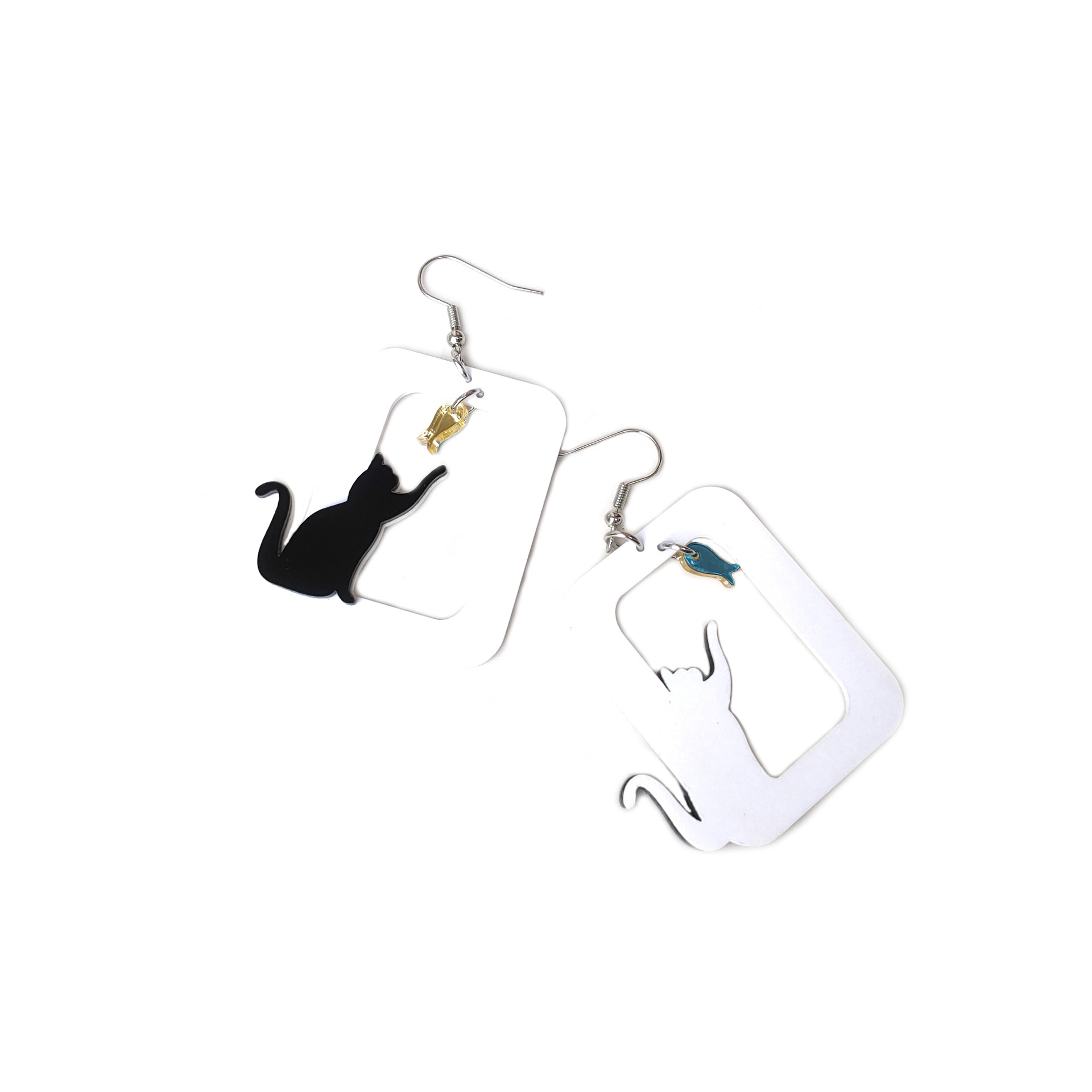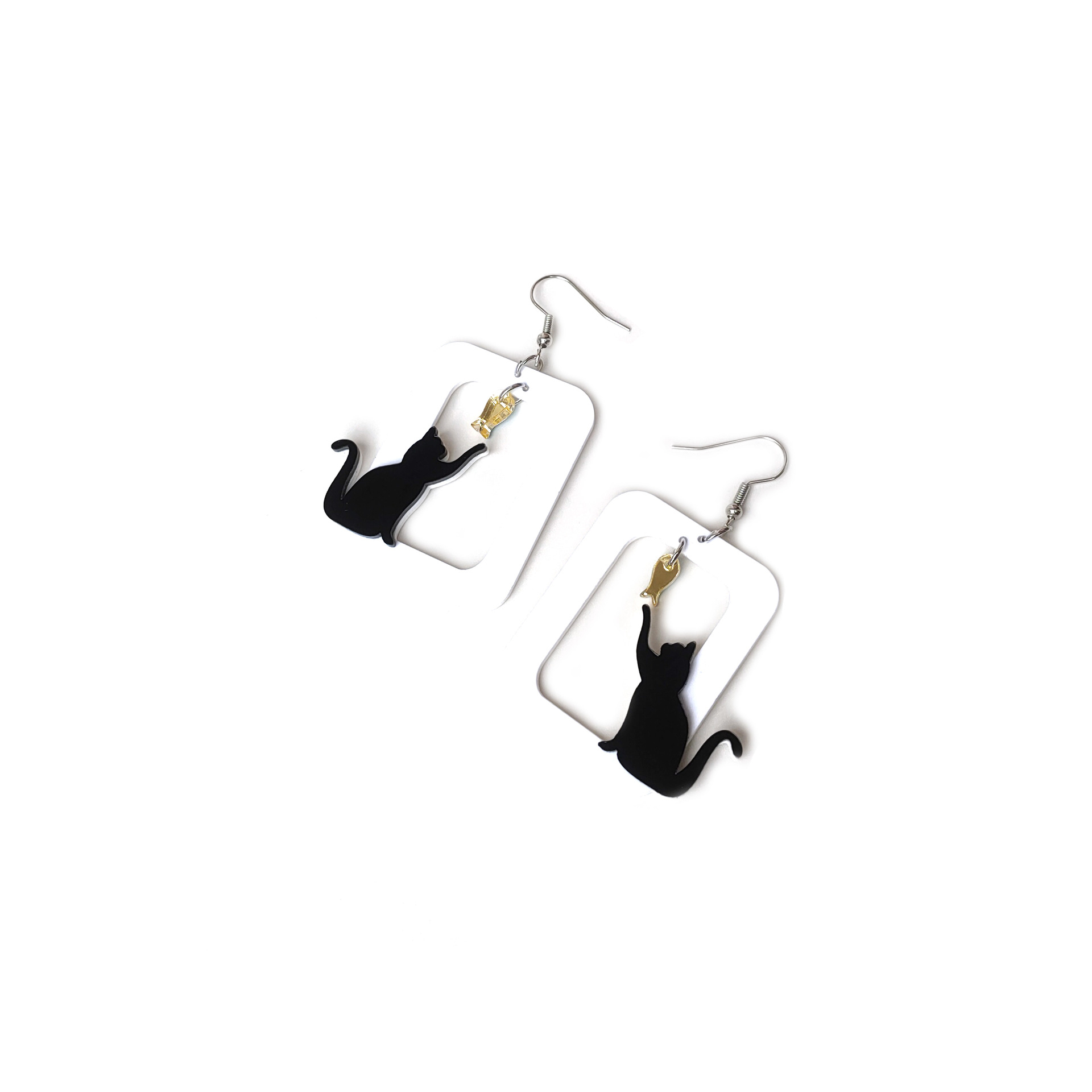 | nameOriginal | European and American jewelry cross-border personalized black cat mirror fish female ear hook acrylic funny earrings |