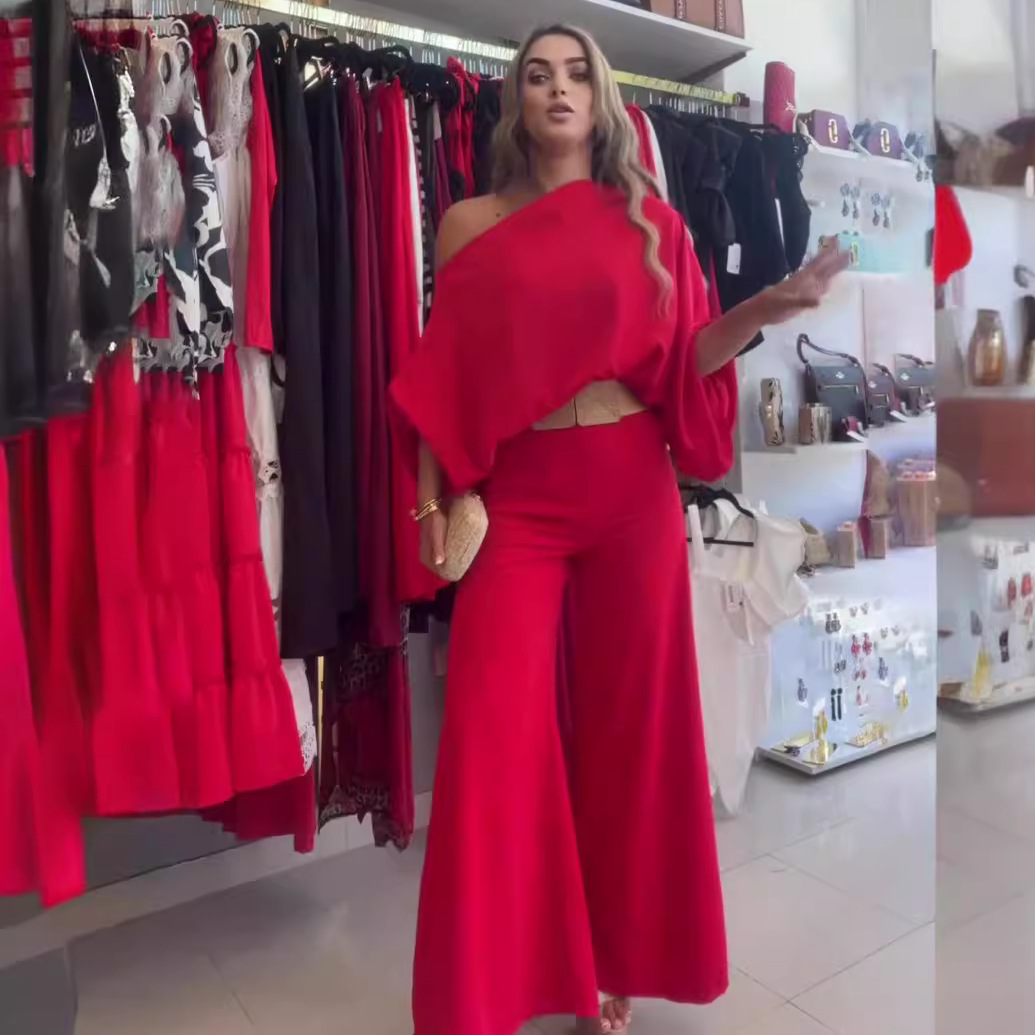| nameOriginal | European and American Jumpsuit New French High-end Temperament Jumpsuit Summer Slant Shoulder Wide Leg Pants Slimming Trousers Women |