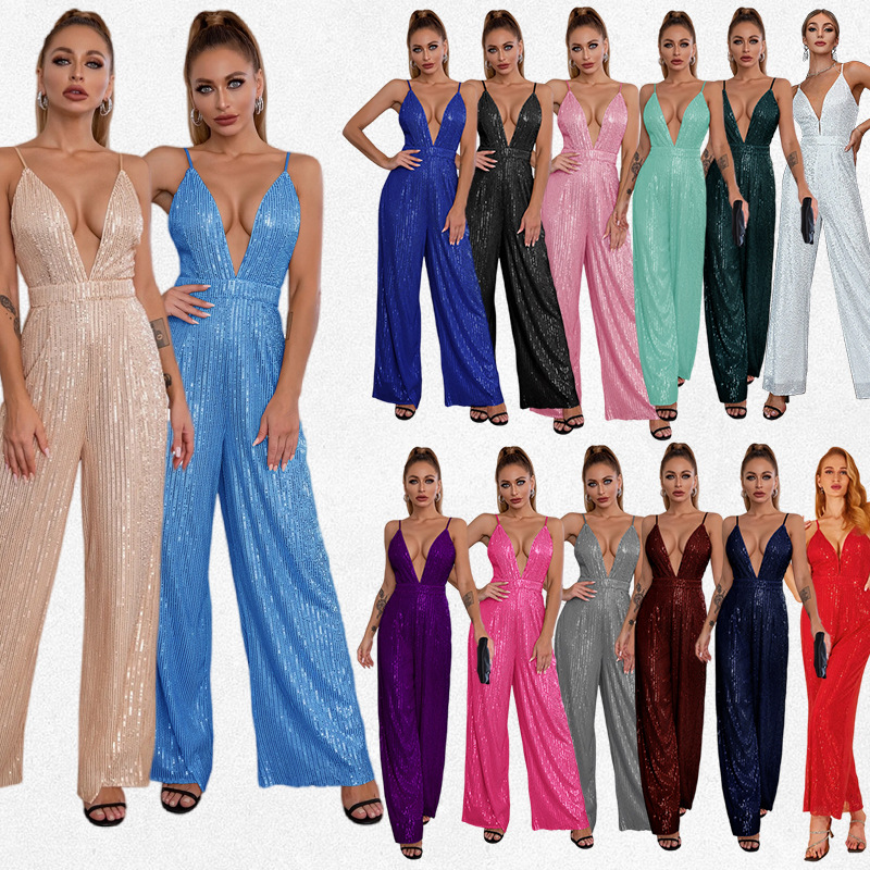 | nameOriginal | European and American jumpsuit summer women's deep V backless sequined jumpsuit Amazon sleeveless suspender jumpsuit wholesale |