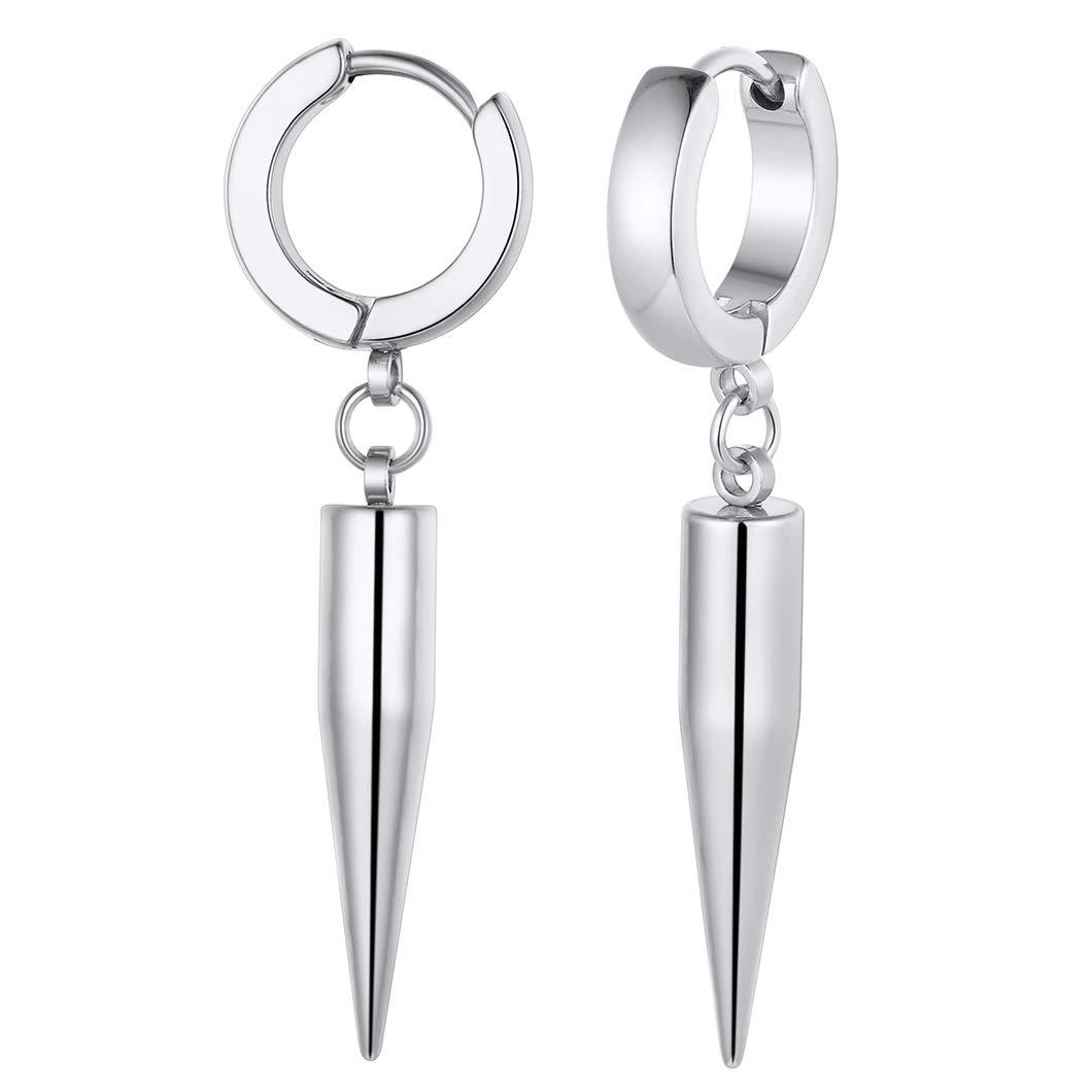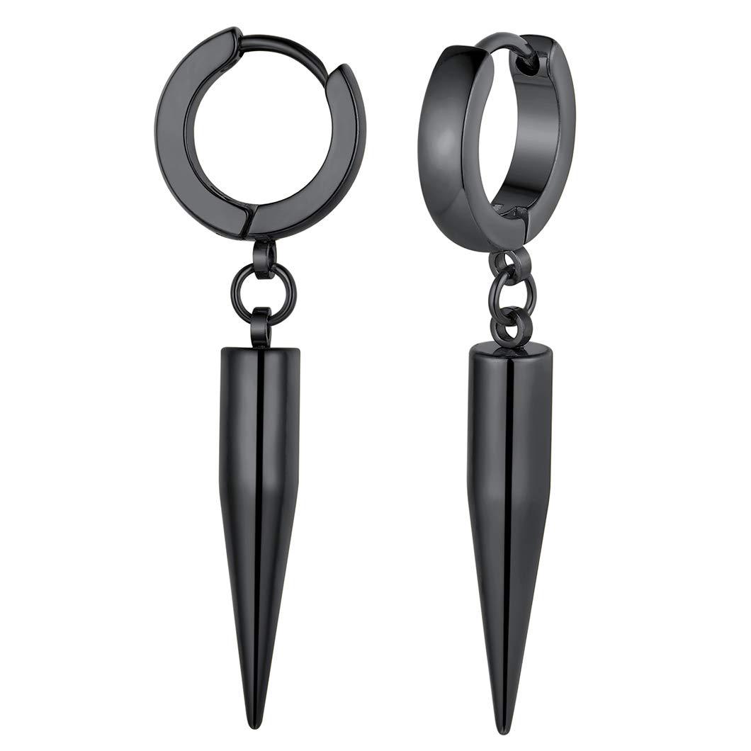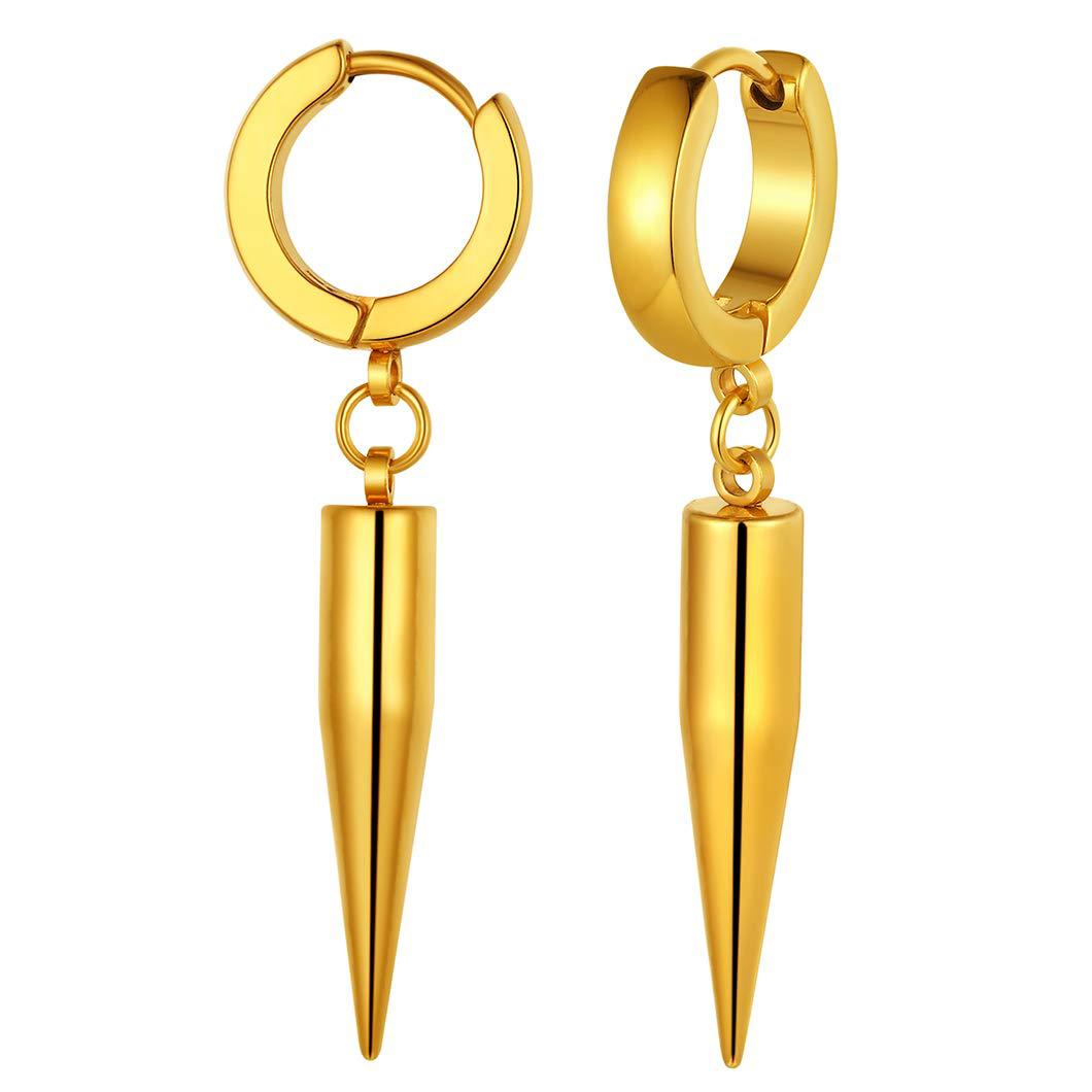 European and American Korean style titanium steel vintage round earrings bullet pendant stainless steel electroplating frame earrings men’s Amazon
