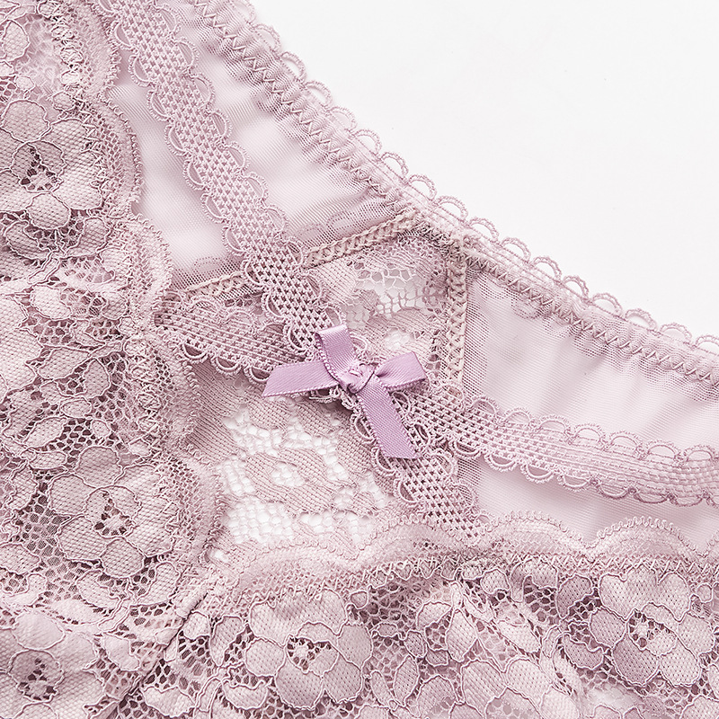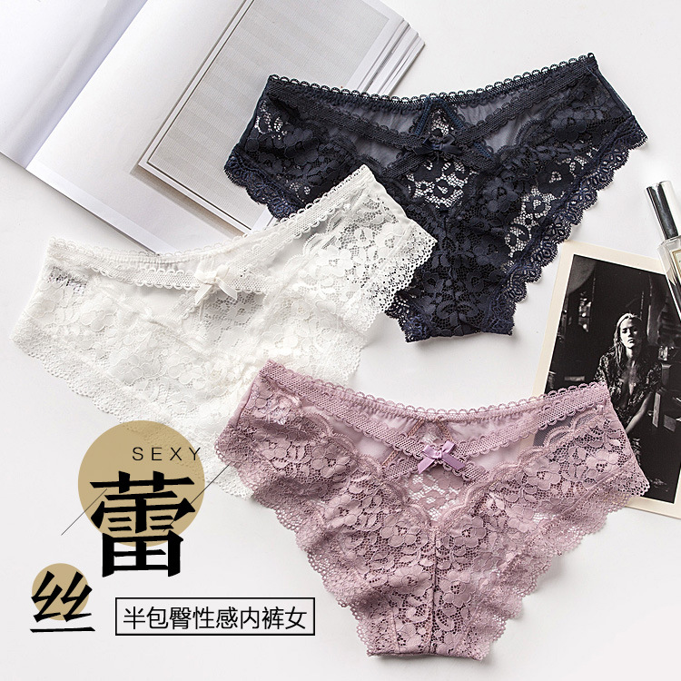 European and American lace underwear women's sexy hollow seamless plus size transparent mesh triangle underwear women's cotton crotch