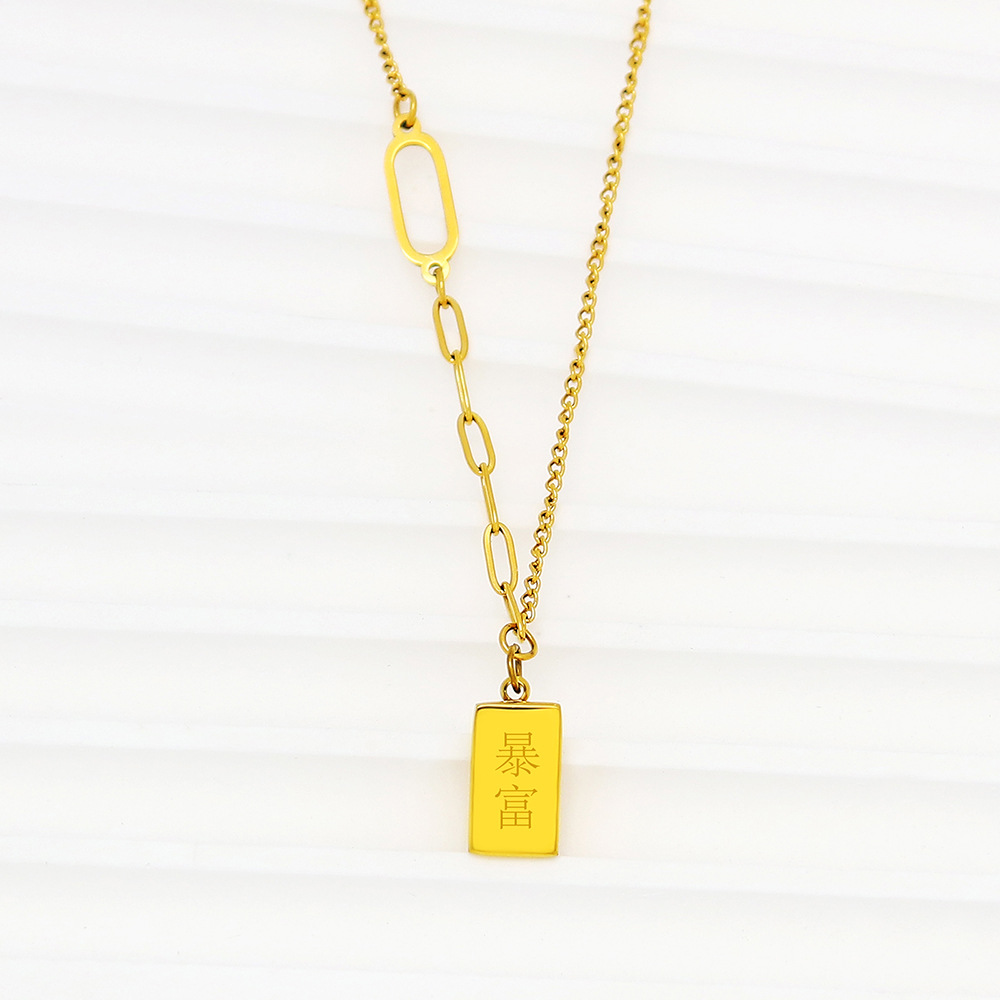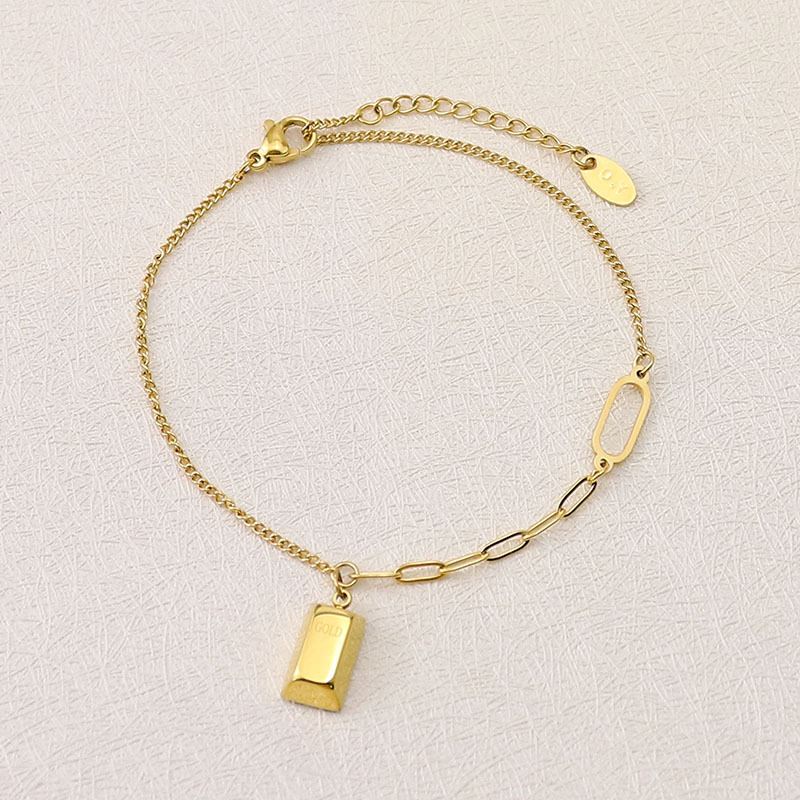 | nameOriginal | European and American Letter GOLD Lucky Small Brick Pendant Necklace Women's Titanium Steel Gold Plated Light Luxury All-match Bracelet Jewelry suit |