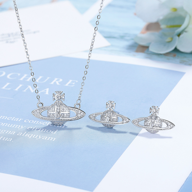 | nameOriginal | European and American Light Luxury Zircon Necklace Earrings suit Women's Empress Dowager Saturn Pendant Jewelry Exquisite Fashion Clavicle Chain |