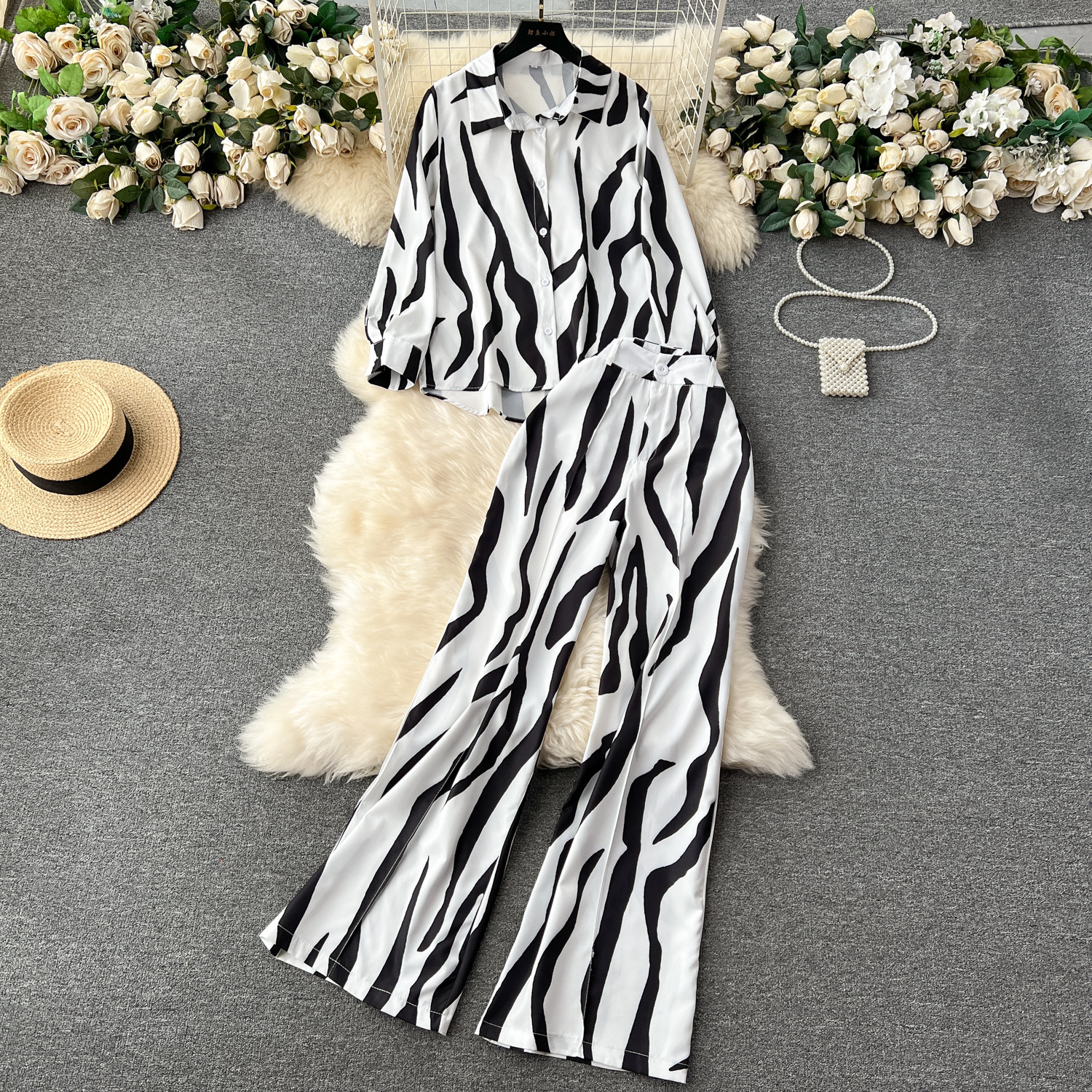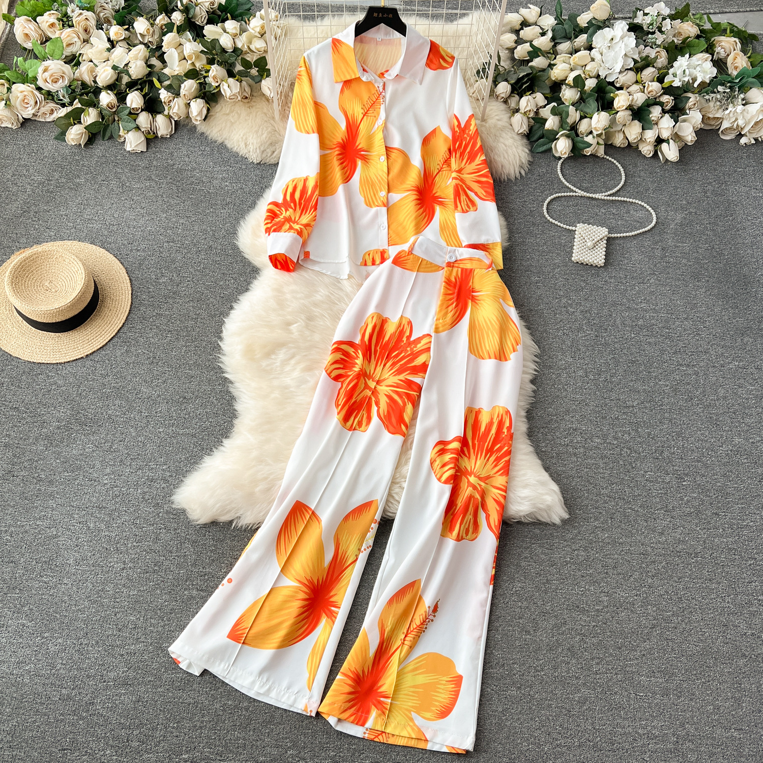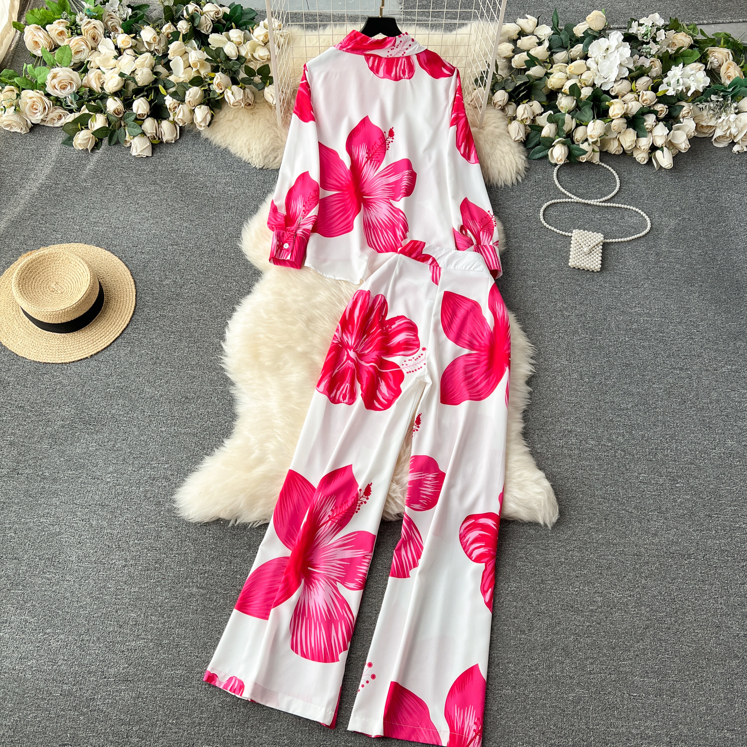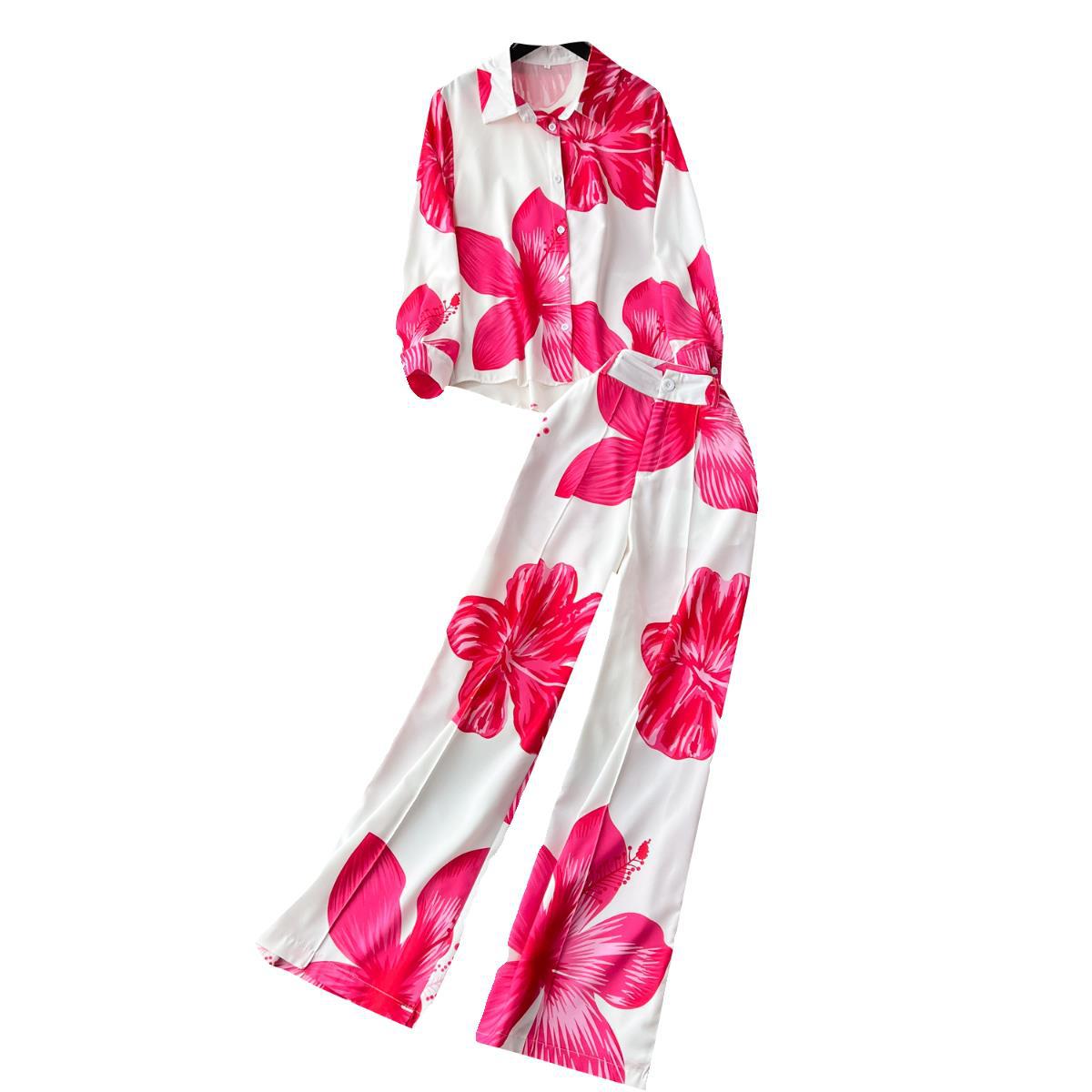 | nameOriginal | European and American light mature style high-grade printed shirt two-piece set women's slimming elegant high waist wide leg trousers fashion suit |