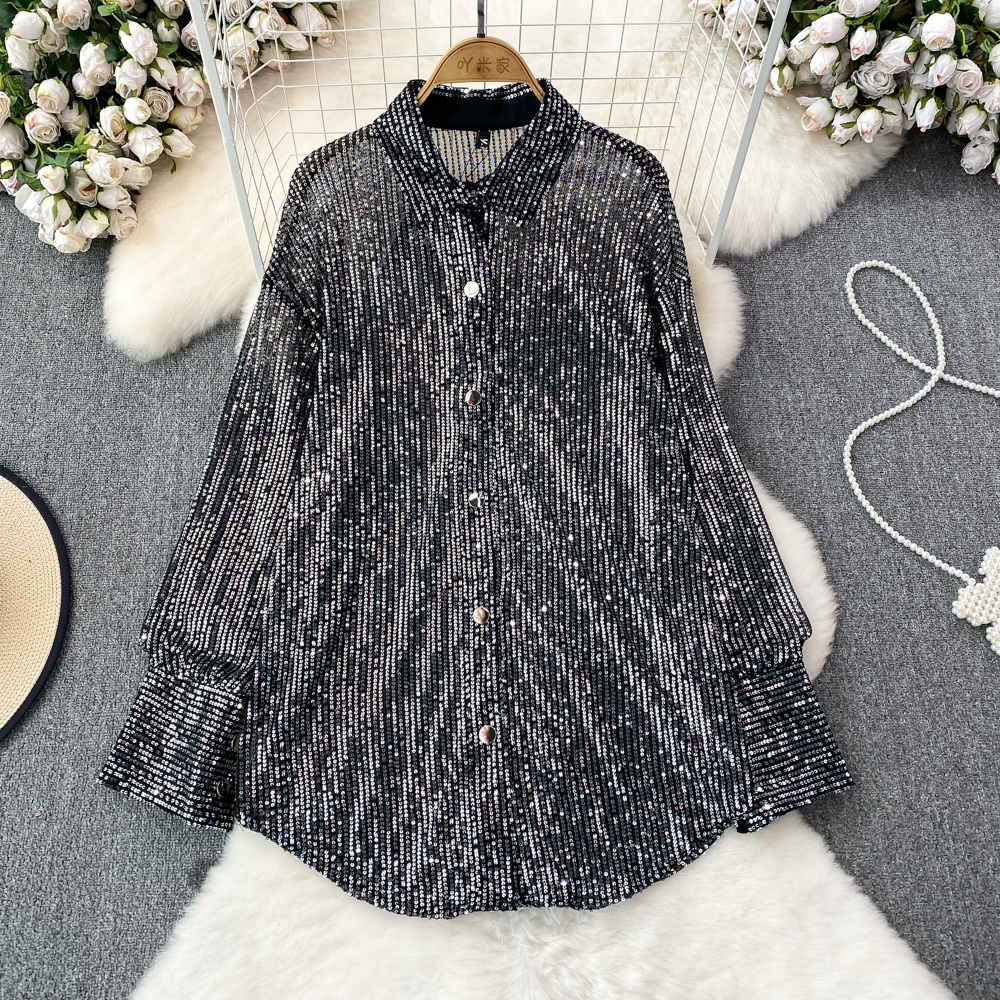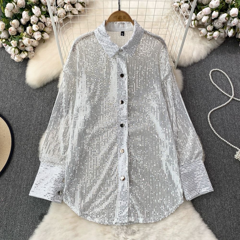 | nameOriginal | European and American long-sleeved loose single-breasted sparkling casual sequins |