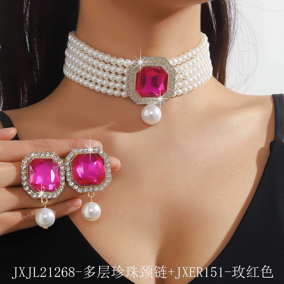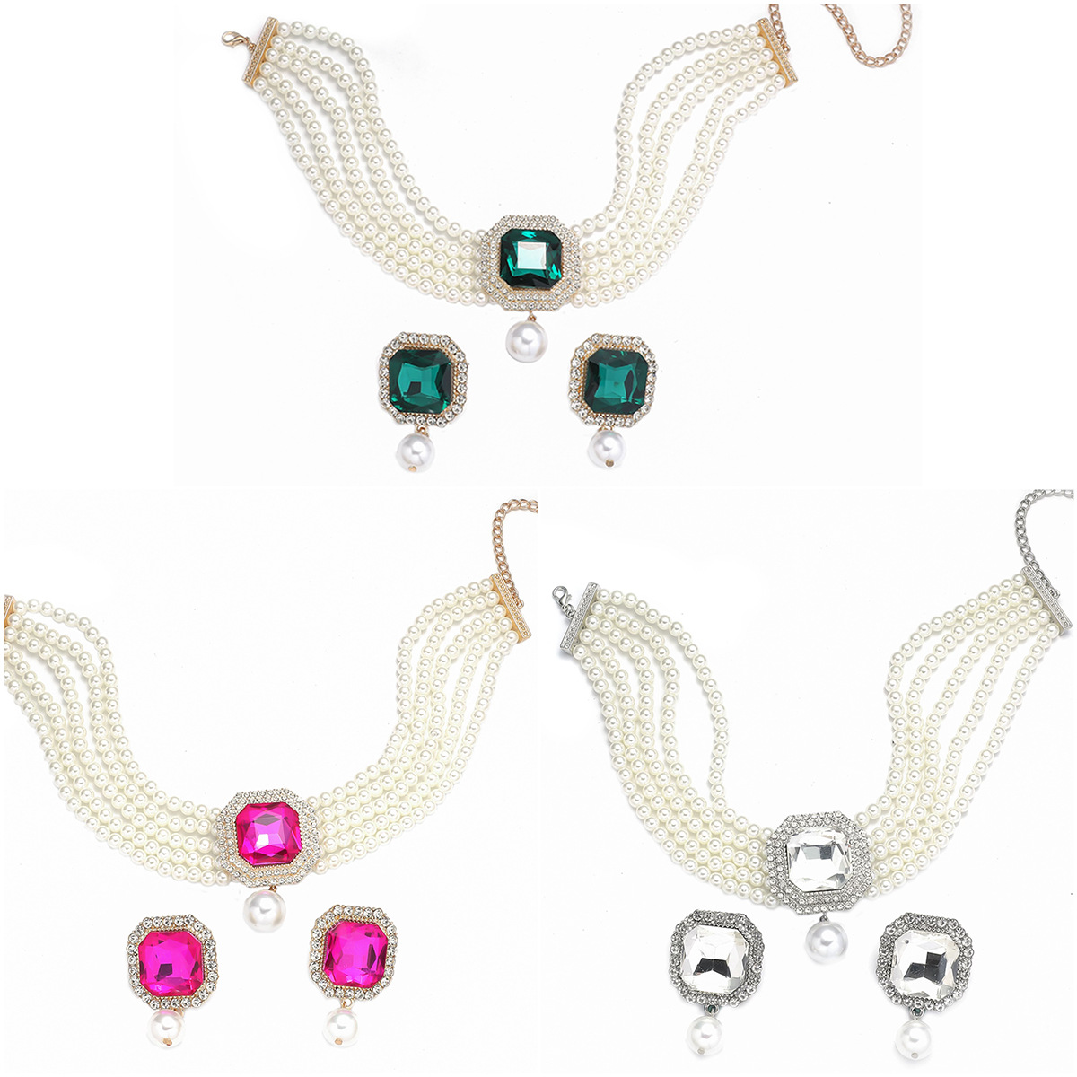 | nameOriginal | European and American luxury multi-layer artificial Pearl geometric crystal necklace ear studs color crystal necklace fashion exaggerated necklace |