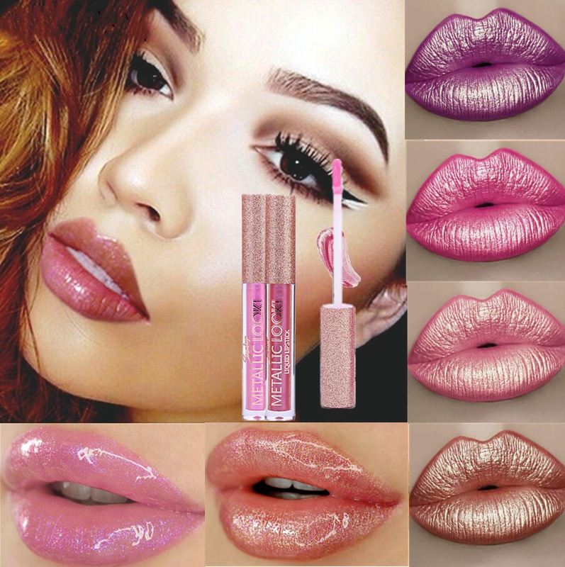 European and American makeup lip gloss, shiny micro-pearl moisturizing lipstick, women's lip dye, gilded powder lip gloss, lip glaze