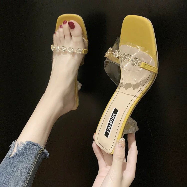 European and American medium-heeled fashion transparent women’s all-match flip-flops