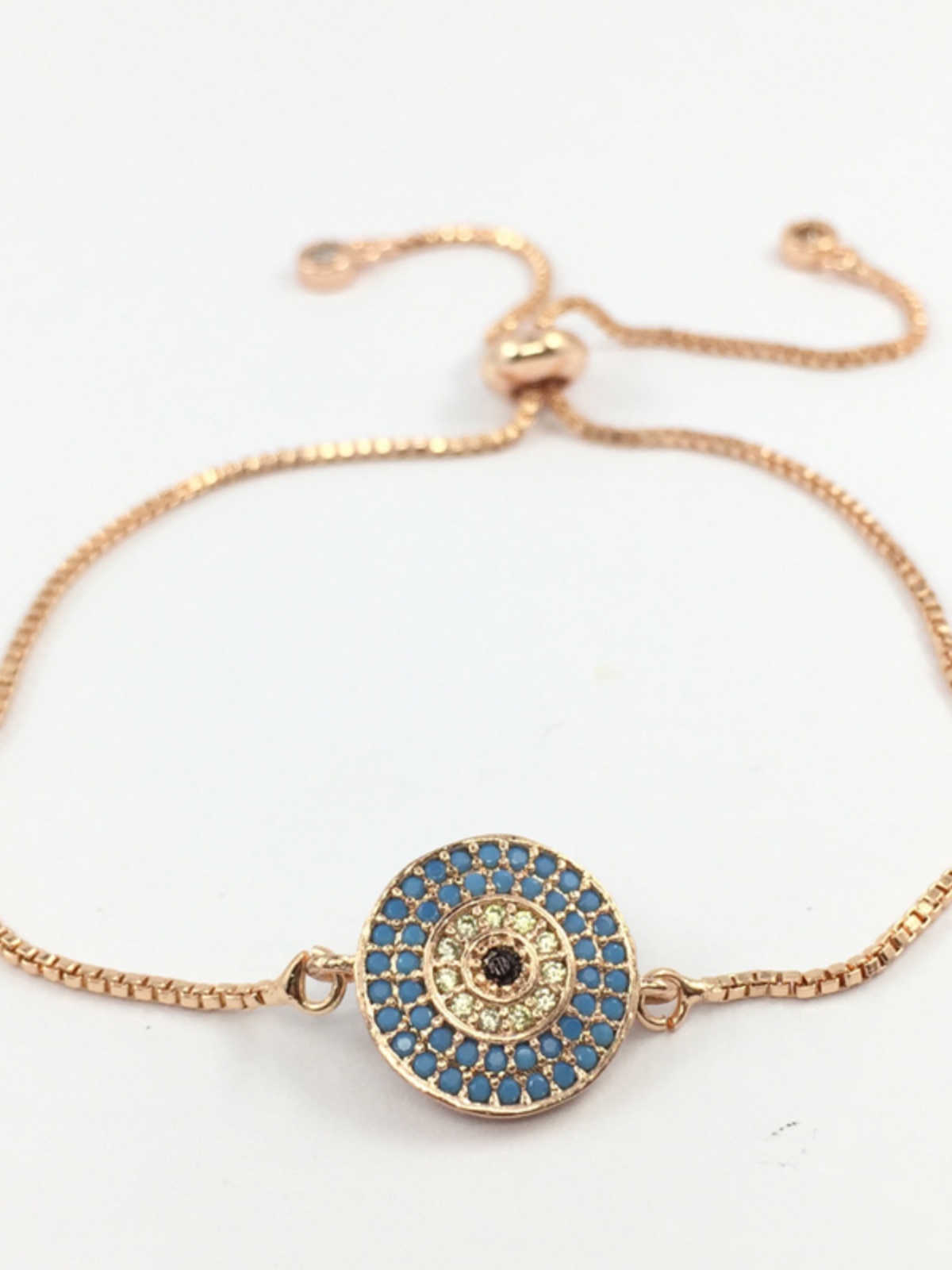 European and American micro-embedded jewelry, round, Turkish blue eyes, Fatima adjustable couple bracelet for women