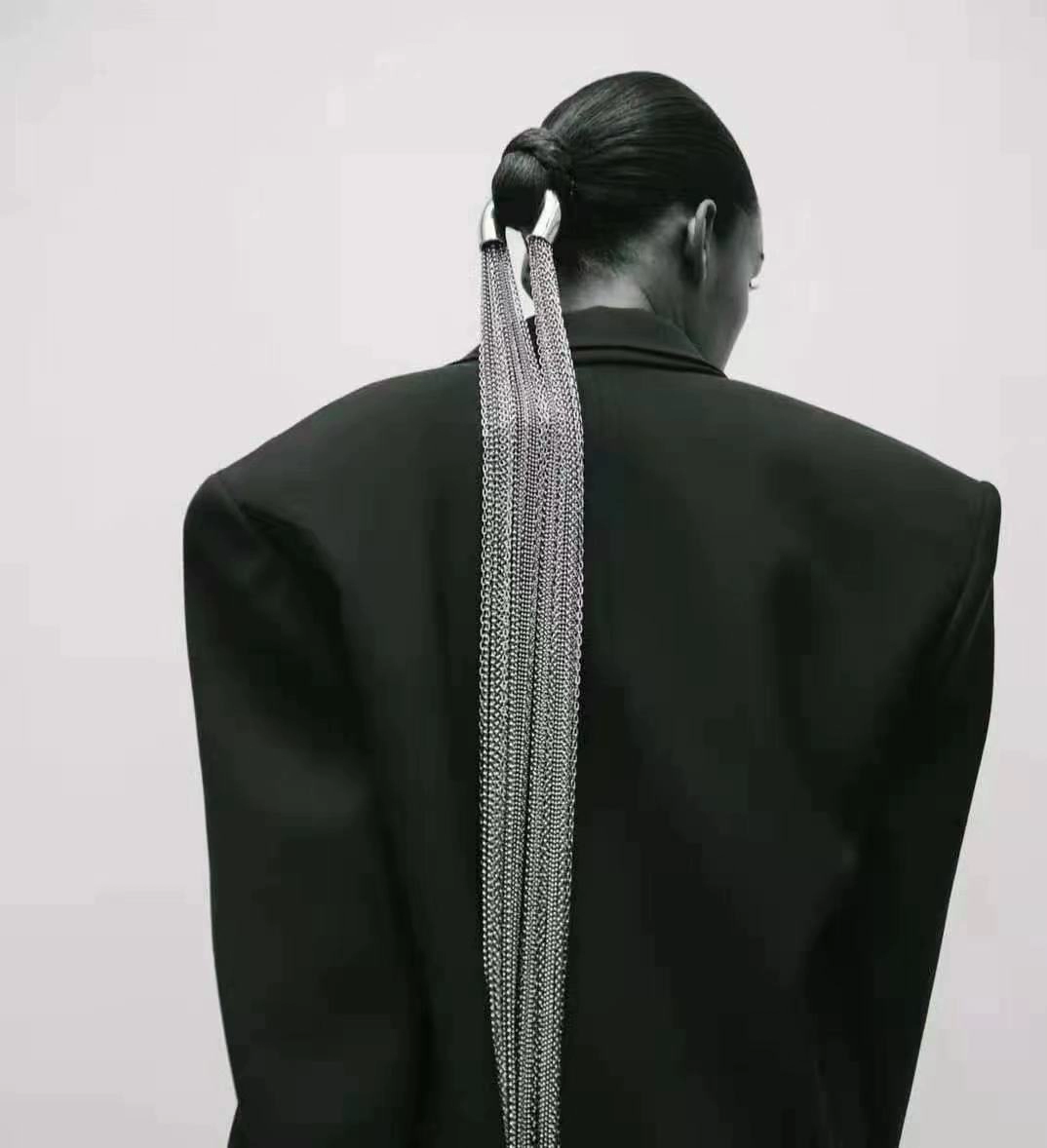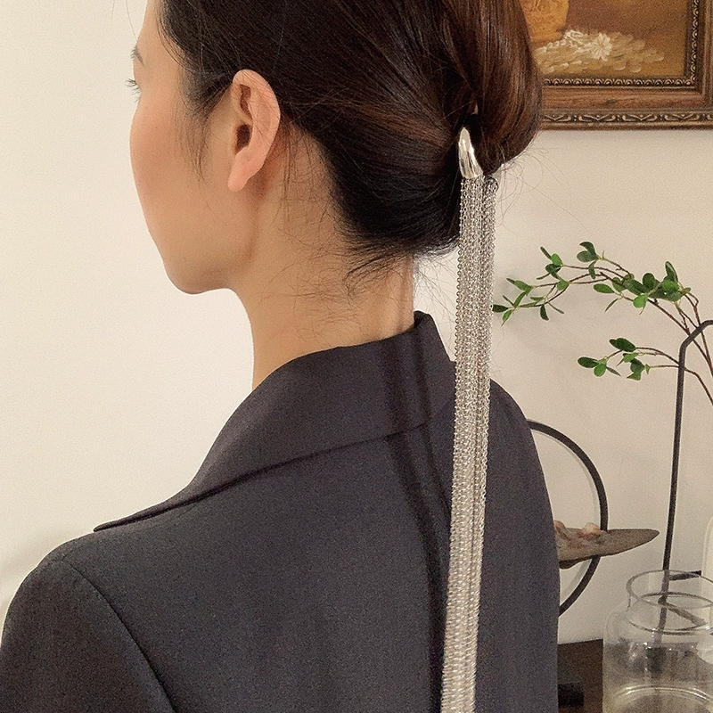European and American multi-layered long tassel chain hair accessories for female internet celebrities 2021 new trendy and exaggerated temperament back of the head headwear
