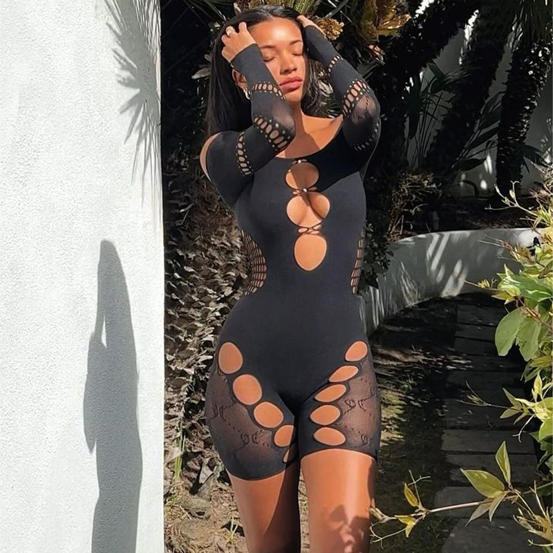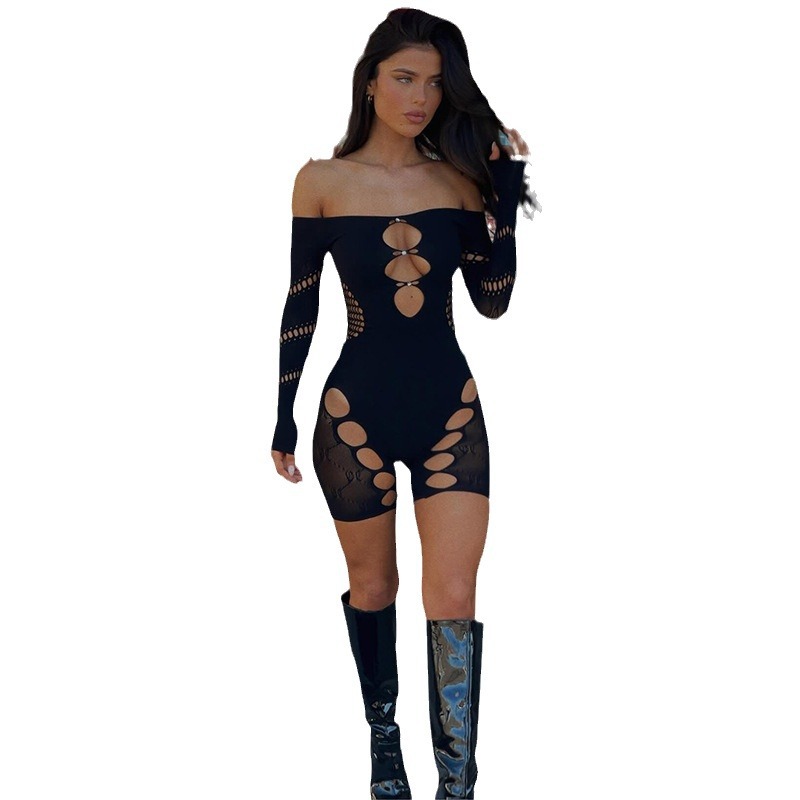 | nameOriginal | European and American New 2024 Women's Summer Solid Color One-piece Collar Sleeve Lace Hollow Slim-fit Sexy One-piece Knitted Short |