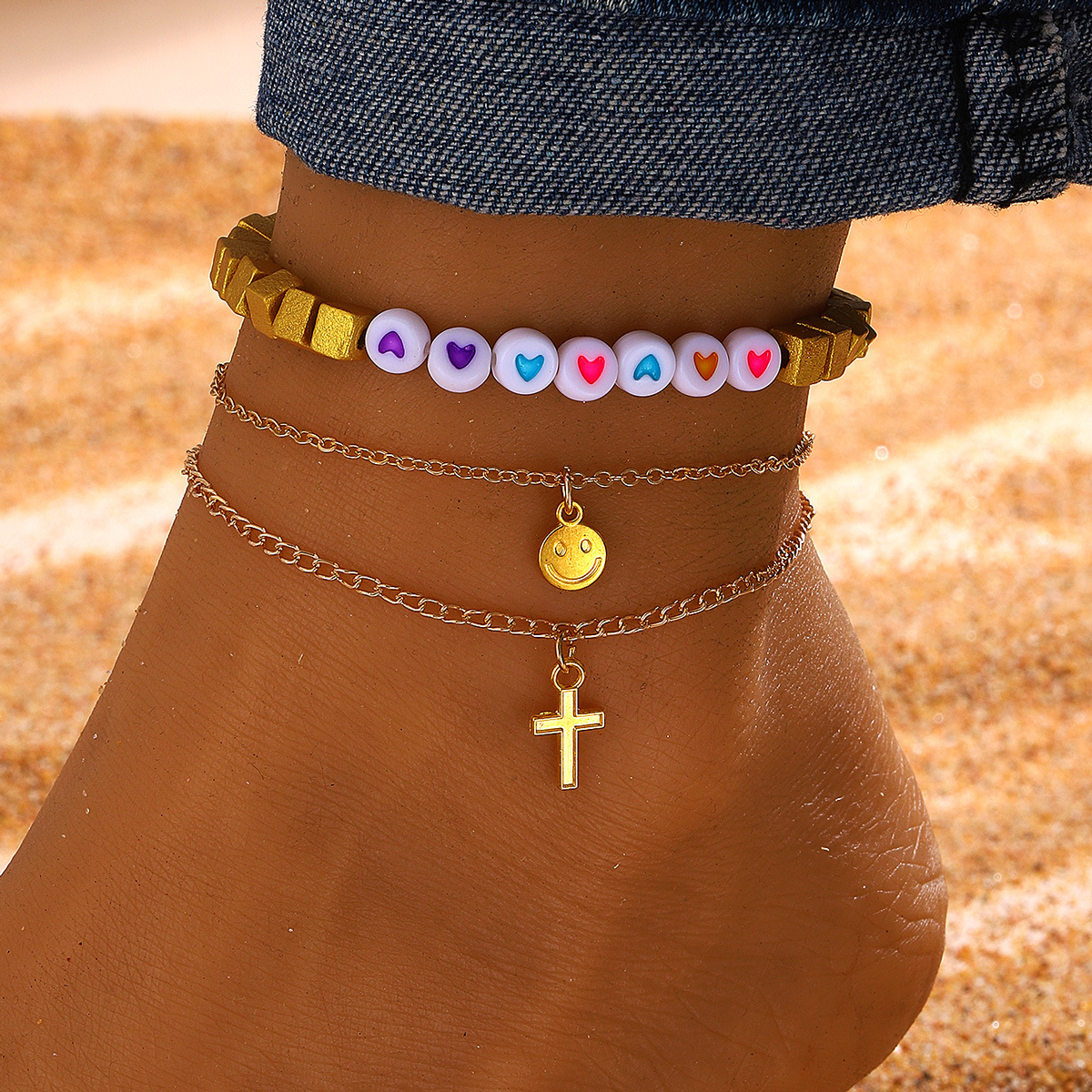 | nameOriginal | European and American new beach foot accessories cross-border fashion unlimited symbol cross pearl anklet women's multi-layer foot Accessories Wholesale |