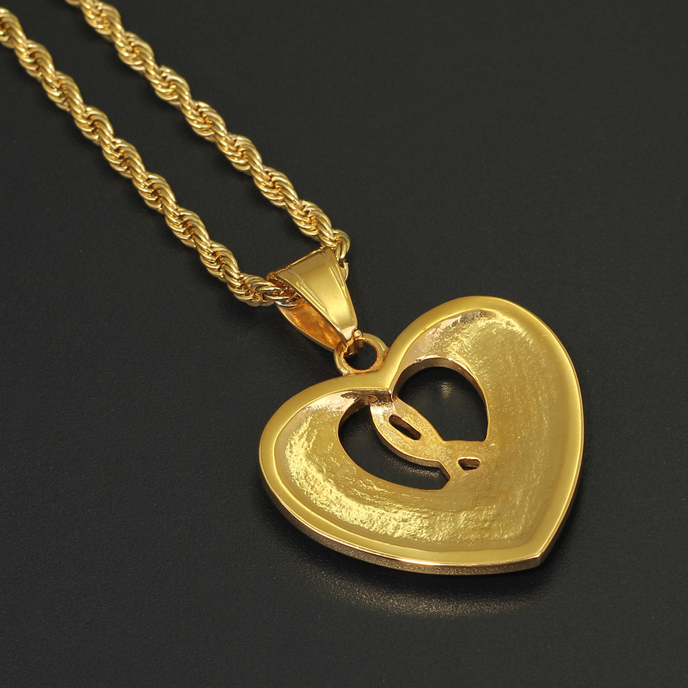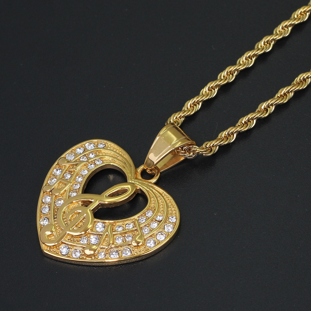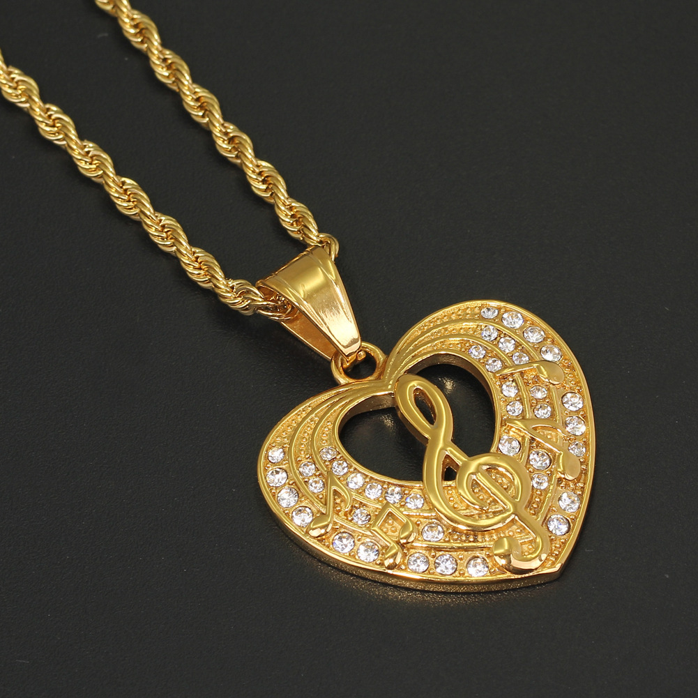 European and American new cross-border necklace heart-shaped music symbol pendant hip hop jewelry vacuum electroplating factory direct sales