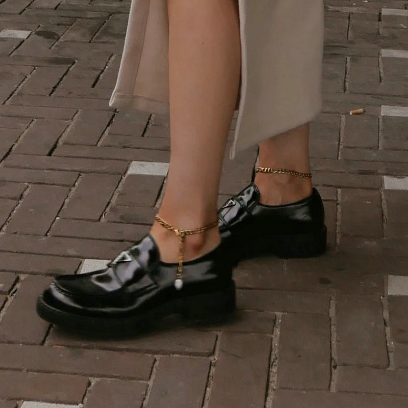 European and American New Fashion 18K Gold Plated Stainless Steel Figaro Chain Anklet Freshwater Baroque Pearl Anklet Women