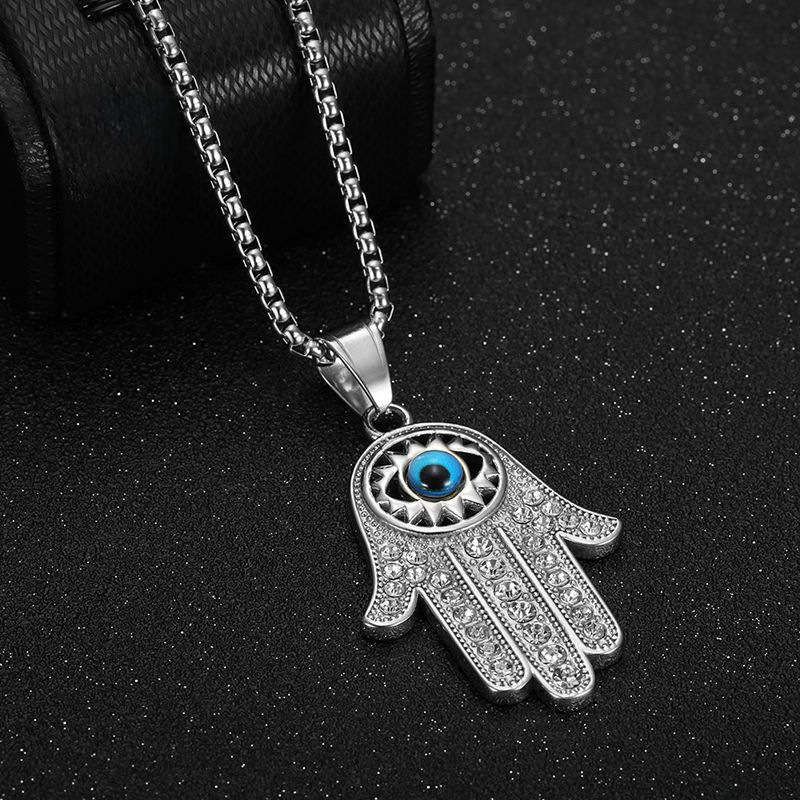 | nameOriginal | European and American New Hip Hop hiphop Jewelry Stainless Steel Gold Plated Rhinestone Blue Eyes Fatima Hand Pendant Necklace |