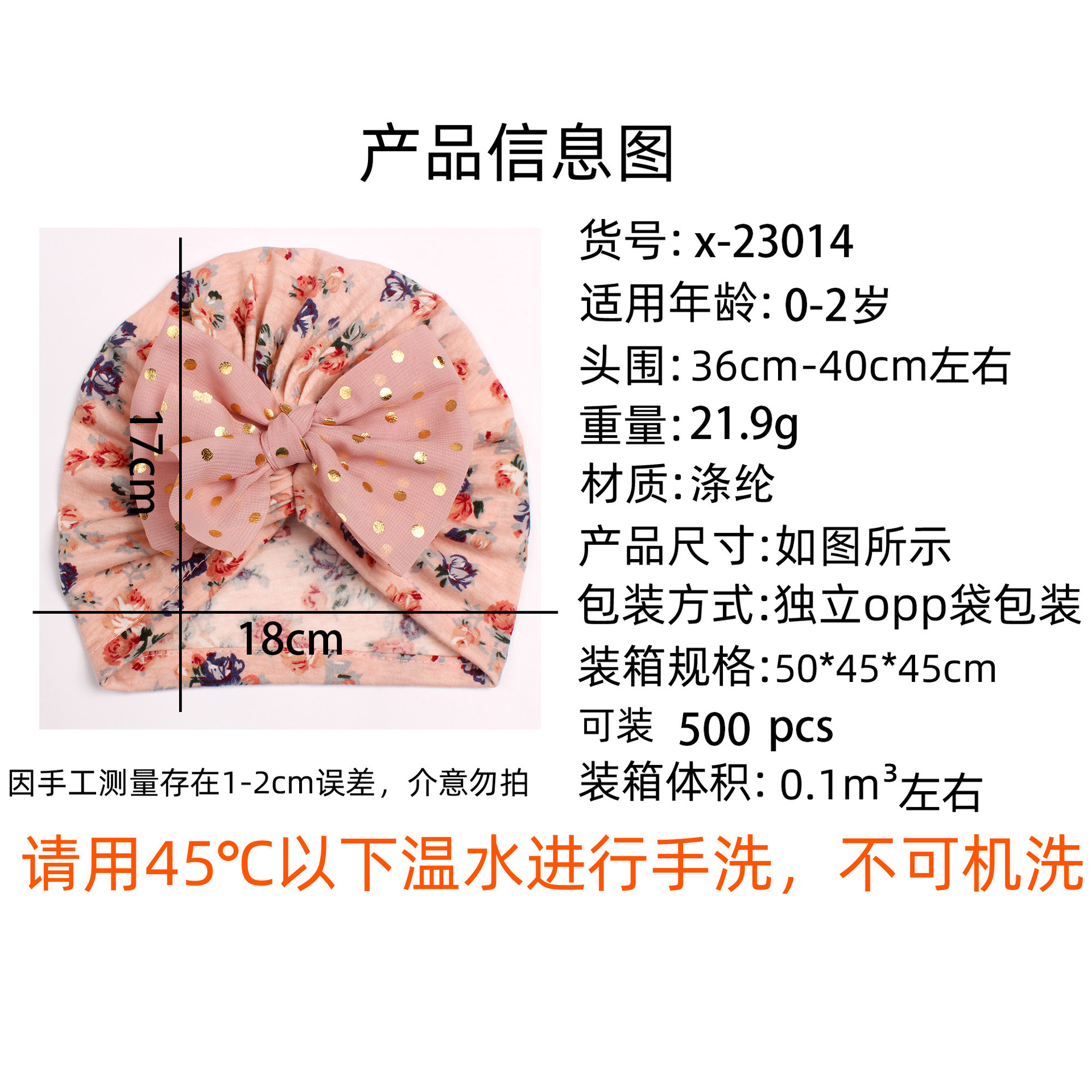| nameOriginal | European and American New Seasonal Printed Children's Hat Baby Bow Bag Head Cap Baby Thin Girl Hat |