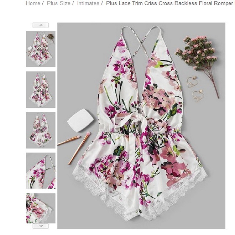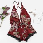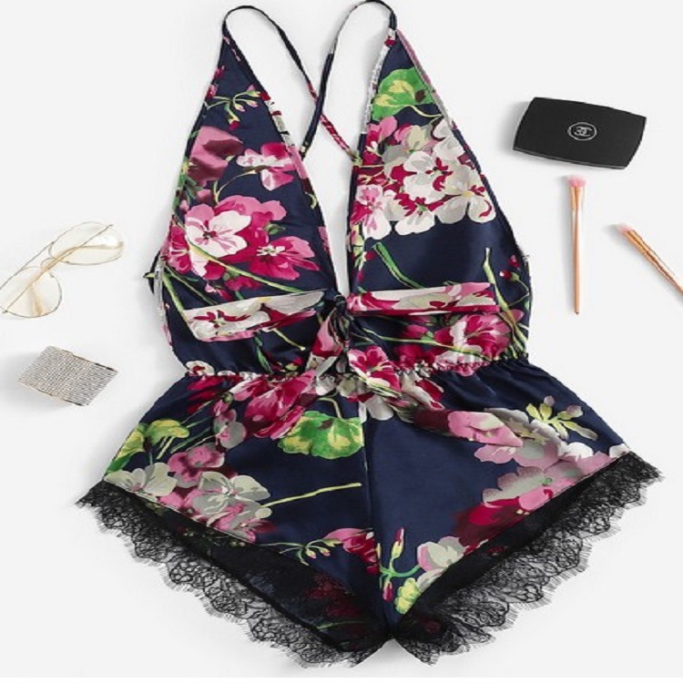| nameOriginal | European and American New Style Deep V Sexy Sling Strap Floral Short Chest Bow Lace-up Printed Loose One-piece Shorts |