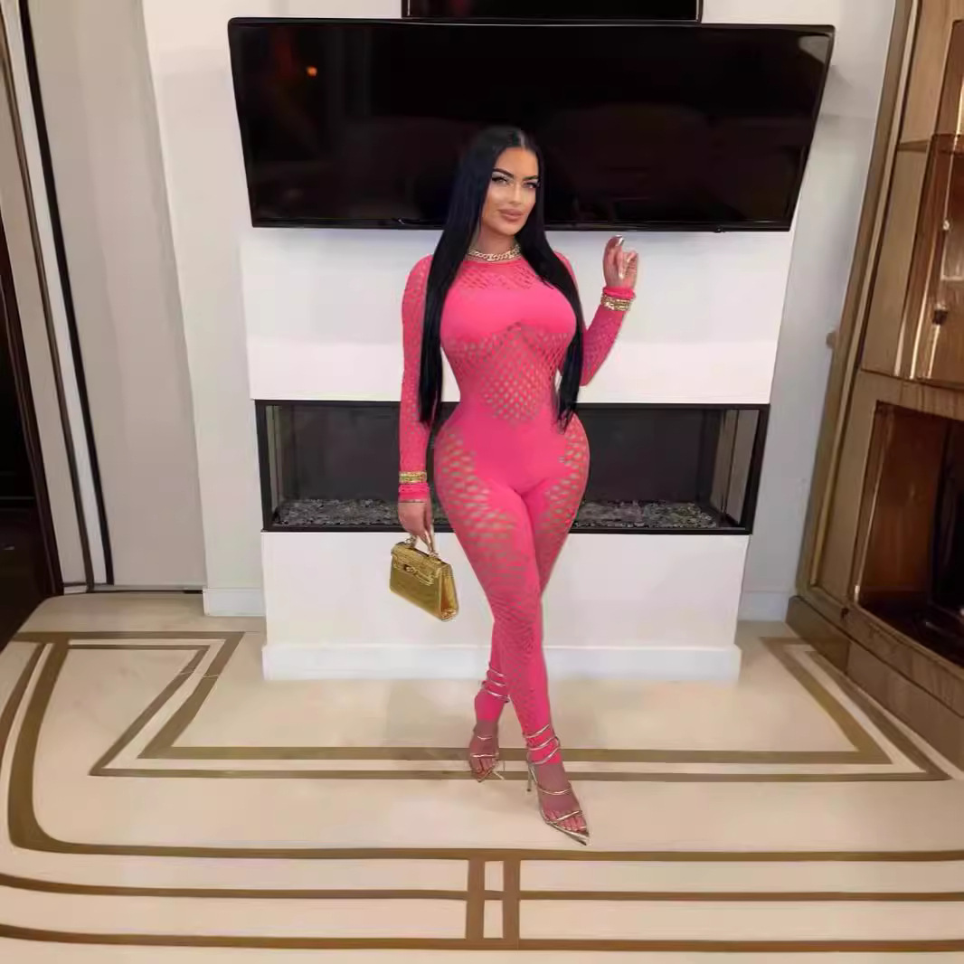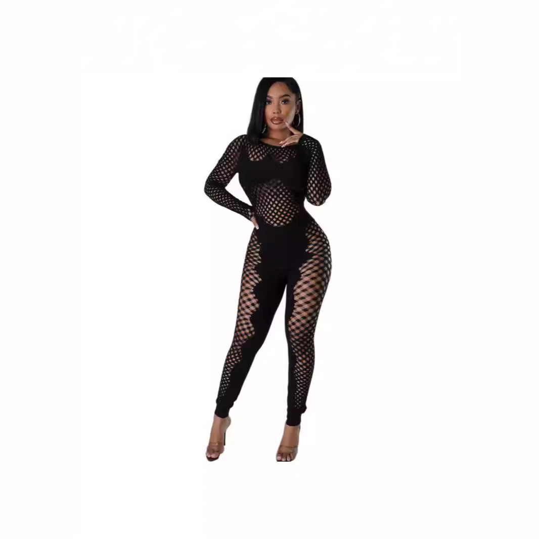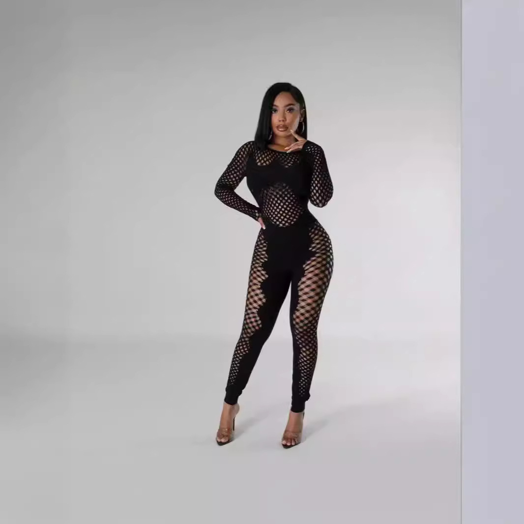 | nameOriginal | European and American New Women's Solid Color Round Neck Hollow Short-sleeved Lace Sexy Slim-fit One-piece Knitted Short-sleeved Jumpsuit |