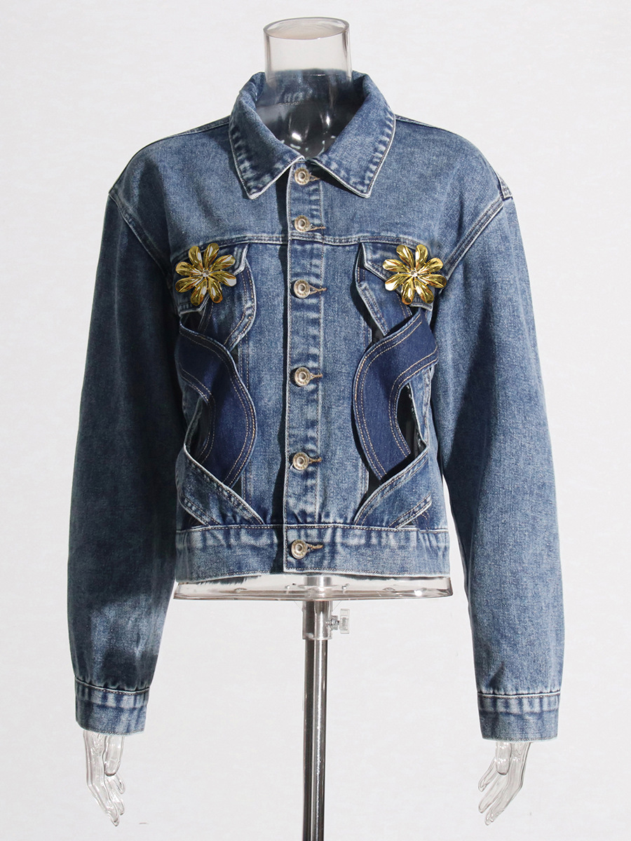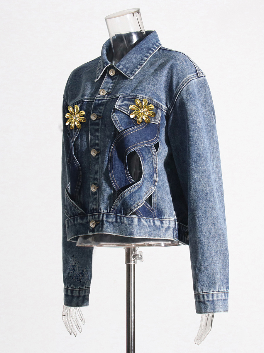| nameOriginal | European and American Niche Design Sense Denim 2024 New Heavy Industry Kink Stitching Lapel Long Sleeve Personalized Jacket for Women |