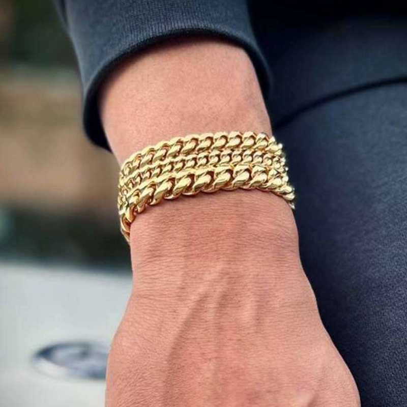 | nameOriginal | European and American non-fading 8mm gold titanium steel Cuban bracelet for men hip-hop couple gold chain silver thick bracelet for women trendy |