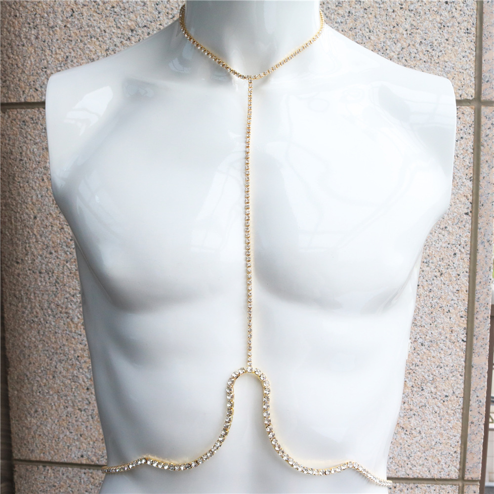 | nameOriginal | European and American novel stitching curved rhinestone chest decoration party full diamond sexy body chain body chain female body chain |