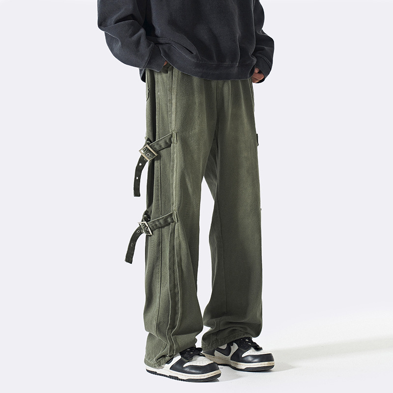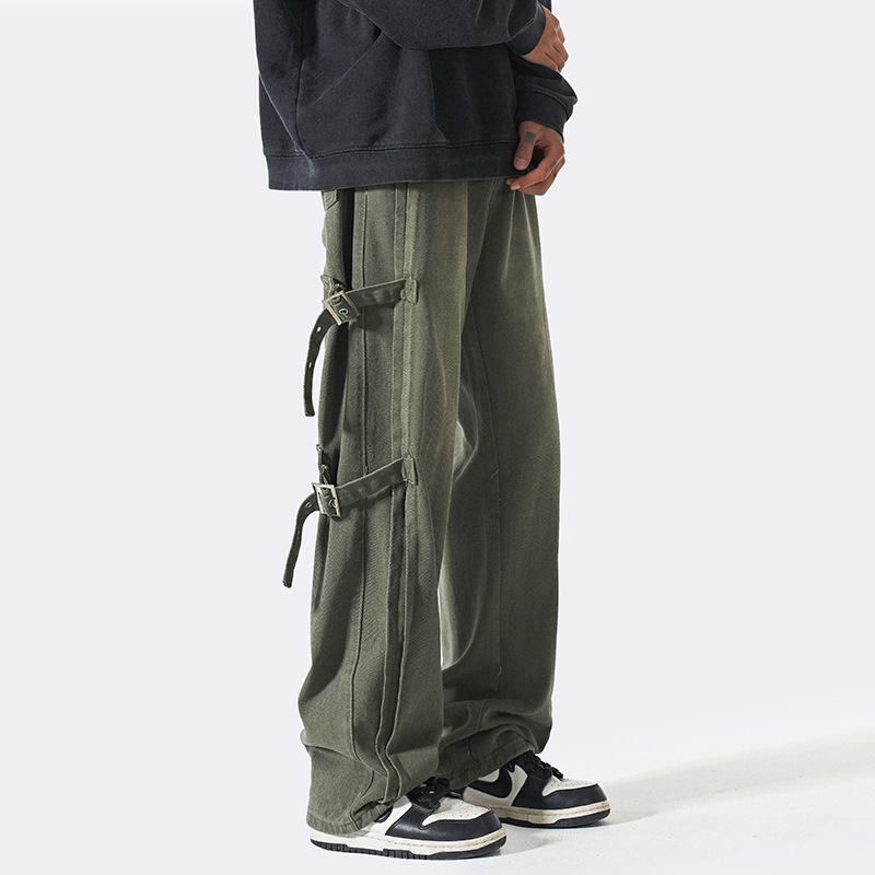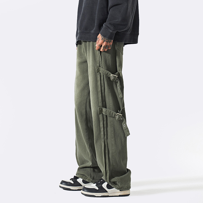 | nameOriginal | European and American oversize pants design sense retro Army Green overalls American high street loose straight wide leg pants |