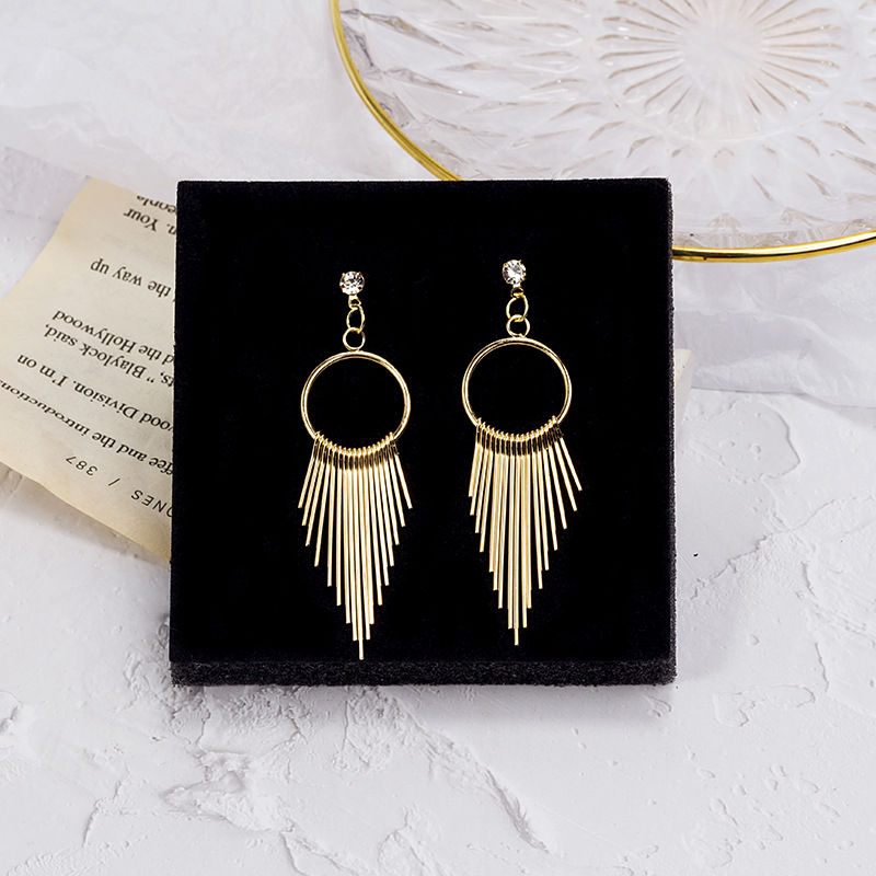 | nameOriginal | European and American personality geometric metal tassel long diamond earrings exaggerated trend retro cross-border hot selling earrings |