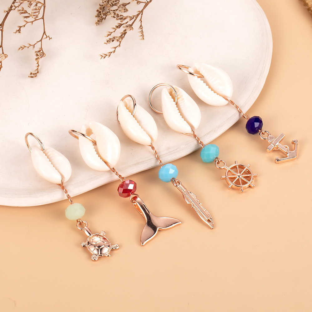 | nameOriginal | European and American personality seahorse turtle rudder fishtail starfish anchor leaf shape shell belly button ring set of 5 pieces |