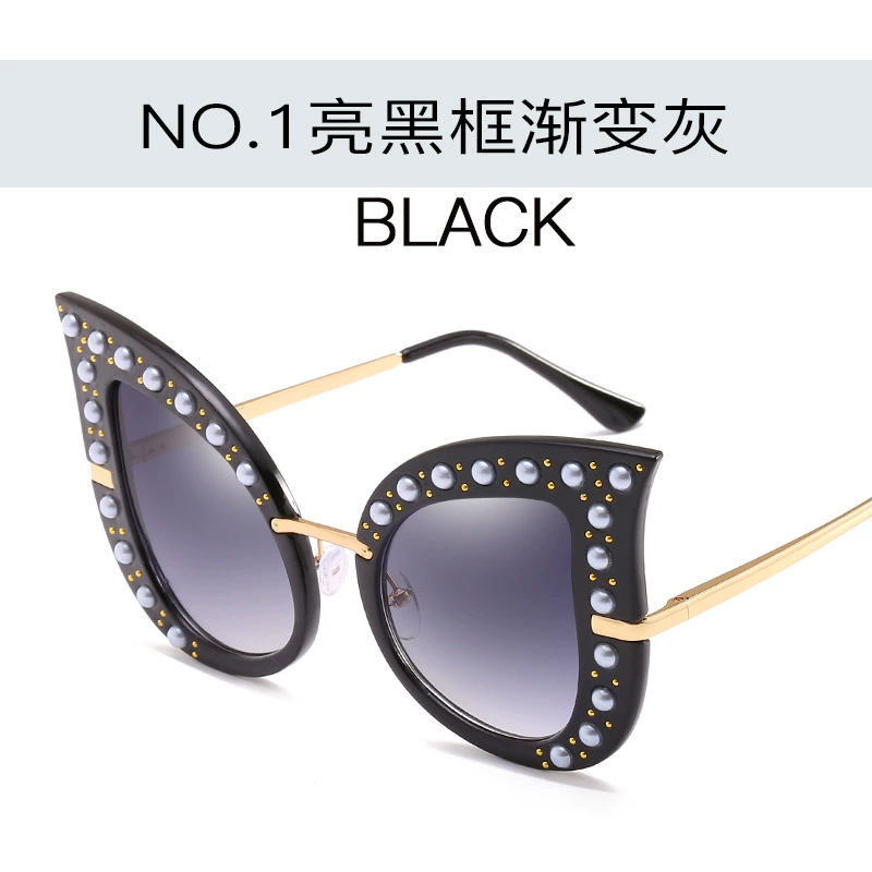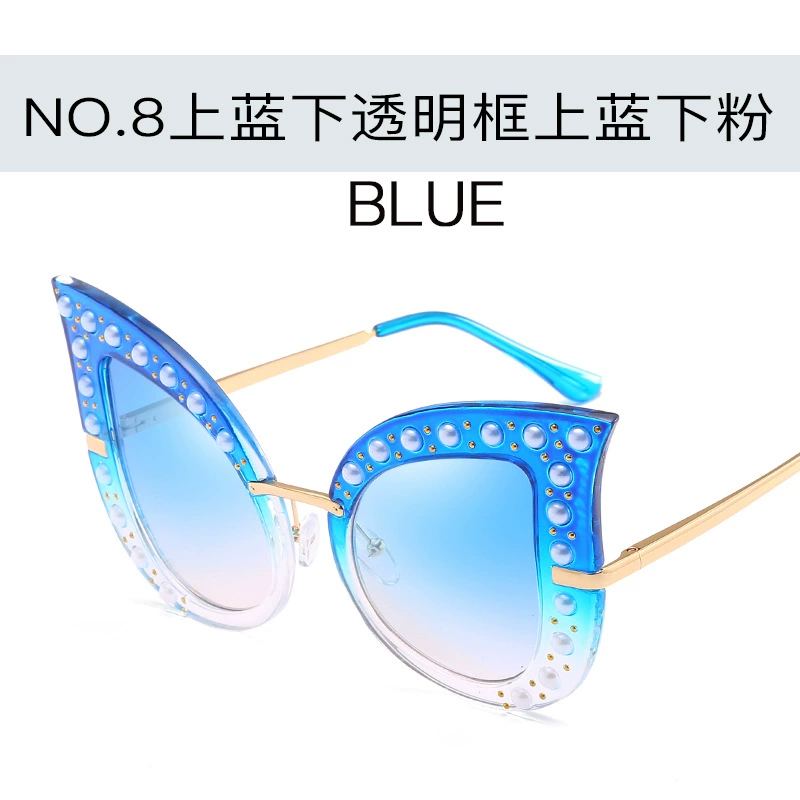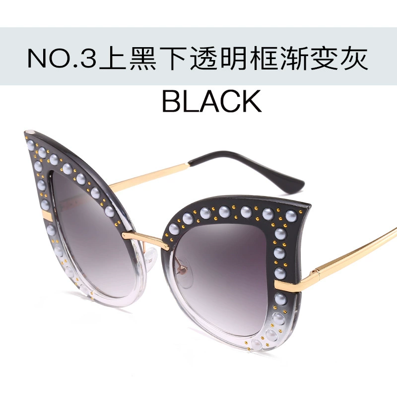 | nameOriginal | European and American personalized new fashion pearl rivet cat eye sunglasses large frame women's sunglasses trendy sunglasses |