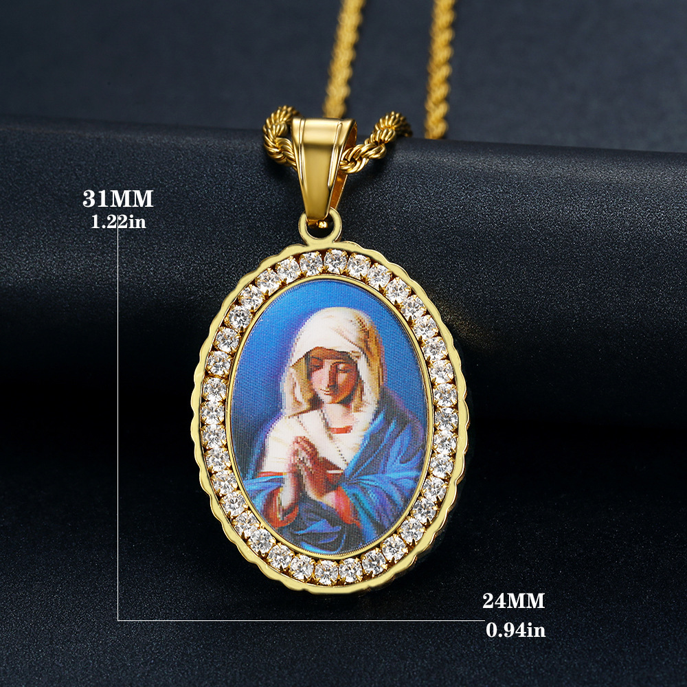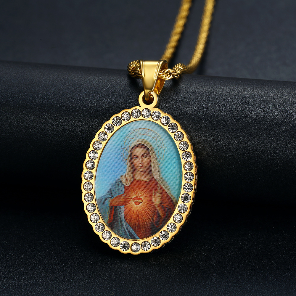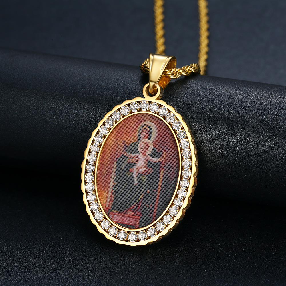 European and American Photo Memory Piece Titanium Steel Zircon Round Photo Frame Solid Color Solid Pendant Hip Hop Necklace