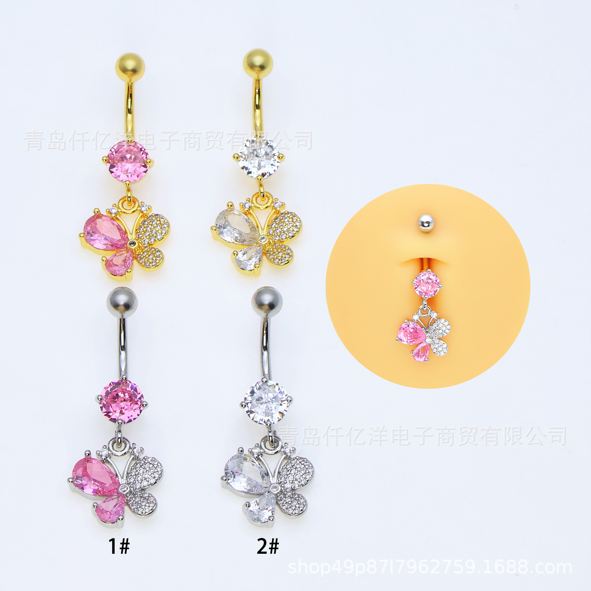 | nameOriginal | European and American popular butterfly belly button ring zircon belly button nail personality with belly button ring stainless steel body piercing jewelry now |