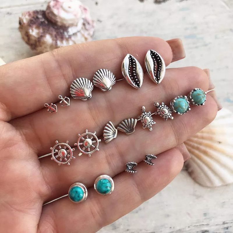European and American popular earrings creative beach style alloy starfish scallop multi-layer earrings cross-border foreign trade jewelry