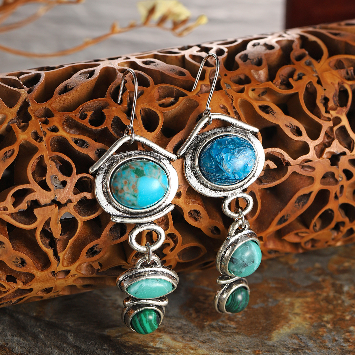 | nameOriginal | European and American Popular Retro Turquoise Earrings Women's Palace Luxury Malachite Exaggerated Earrings Cross-border New Hot Selling |