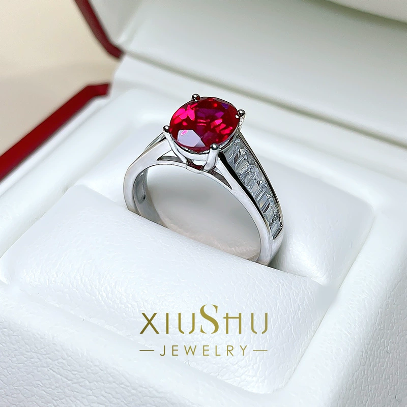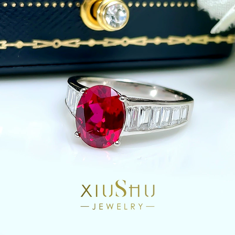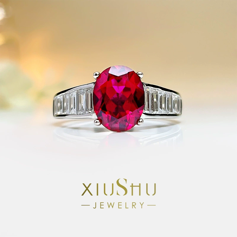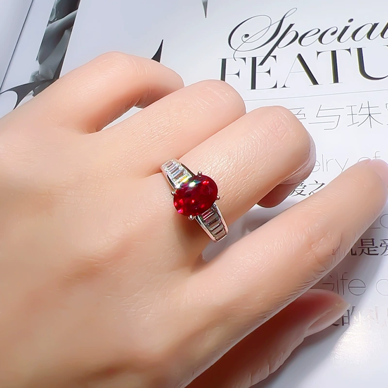 European and American retro artificial ruby ​​egg-shaped temperament ring 925 silver red corundum high-end sense of socialite new versatile women