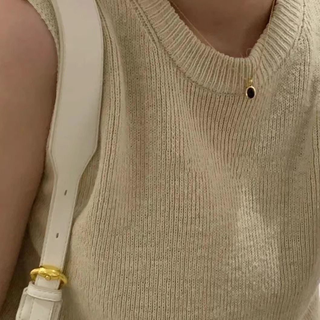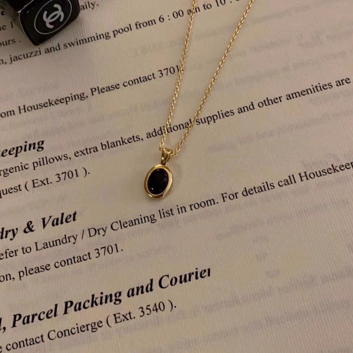 European and American Retro Black Oval Pendant Necklace Women’s Minimalist Ins Personality All-match Clavicle Chain Necklace Chain