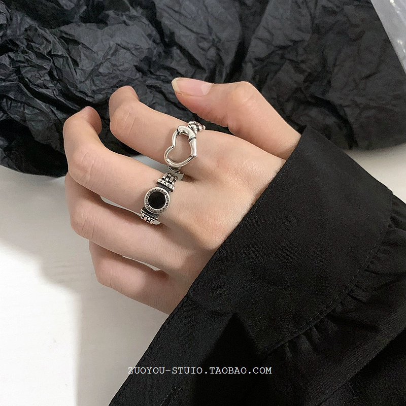 | nameOriginal | European and American retro black Roman letter ring for women ins cold style niche design high-end open index finger ring |