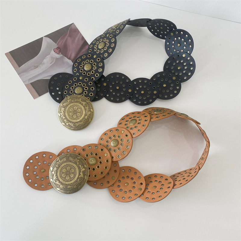 | nameOriginal | European and American retro Denim style metal hollow round buckle belt female decorative personalized belt niche waist seal factory wholesale |