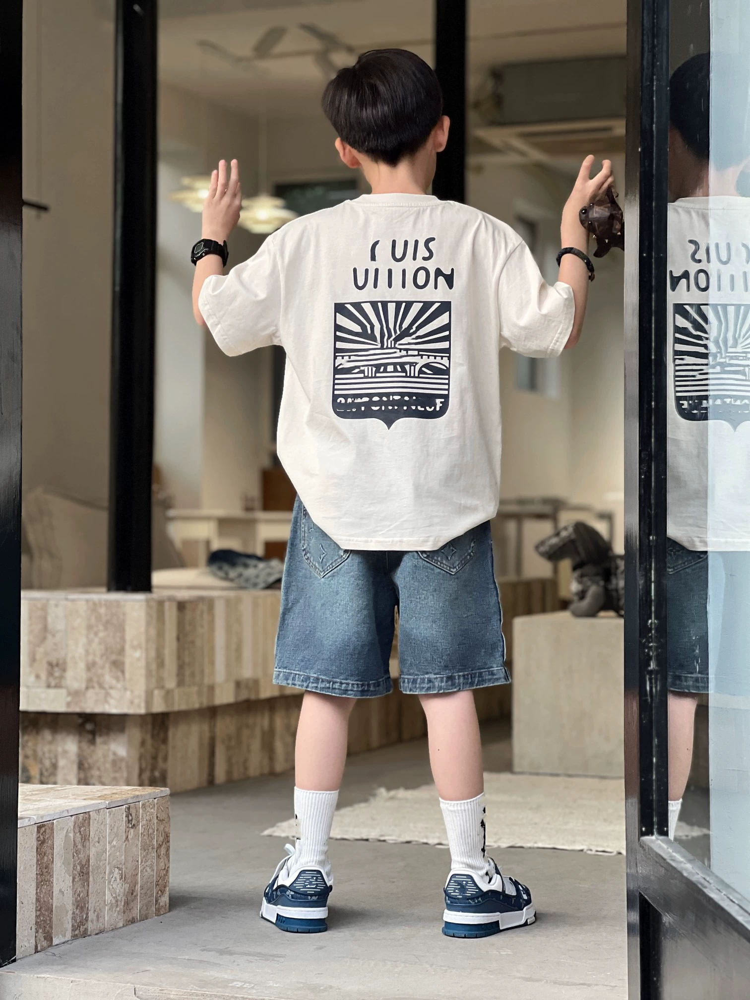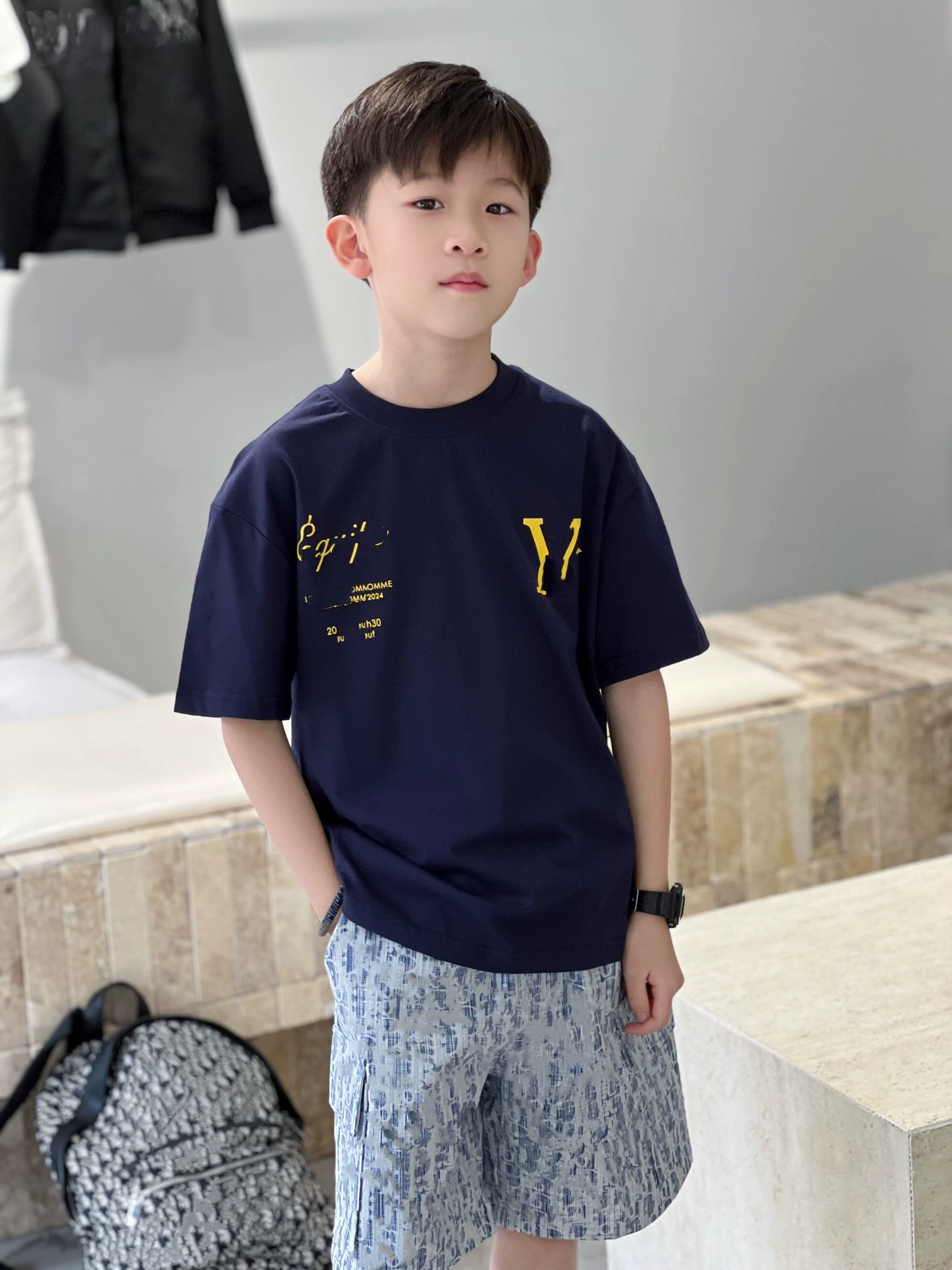 European and American retro double-sided printed T-shirts casual street style tops for boys and girls 2-14 years old spring and summer bottoming shirts