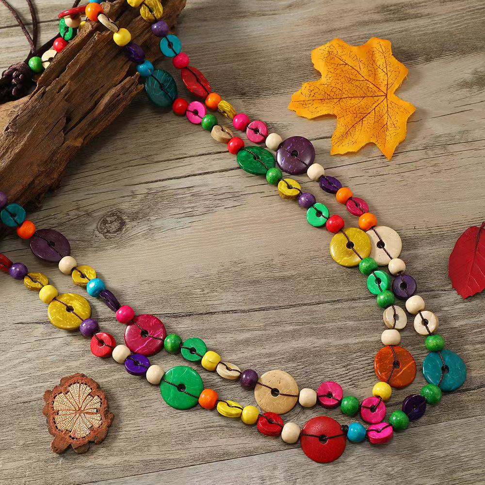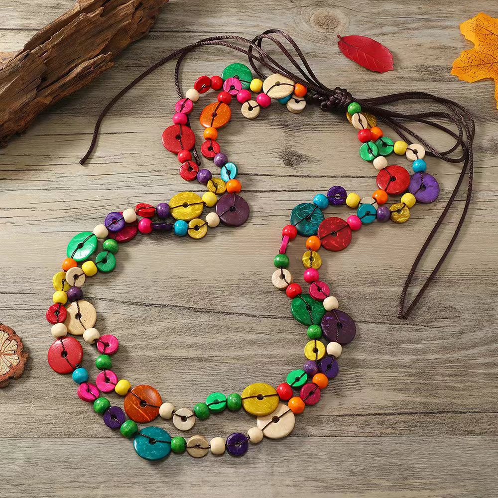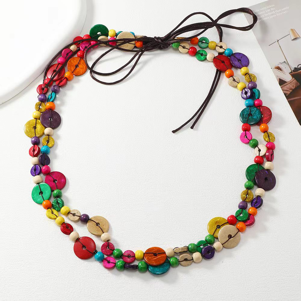 | nameOriginal | European and American retro ethnic style hand-woven women's geometric bohemian multi-layer colorful coconut shell waist chain belt jewelry |