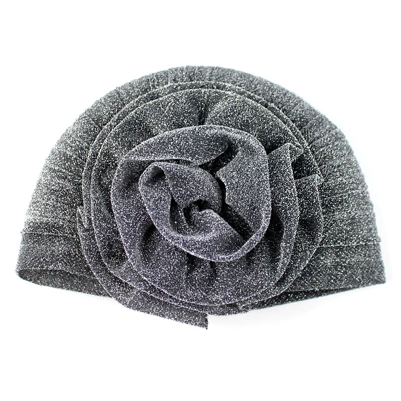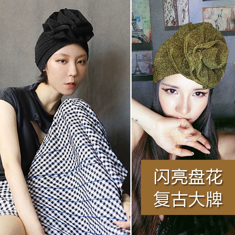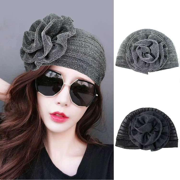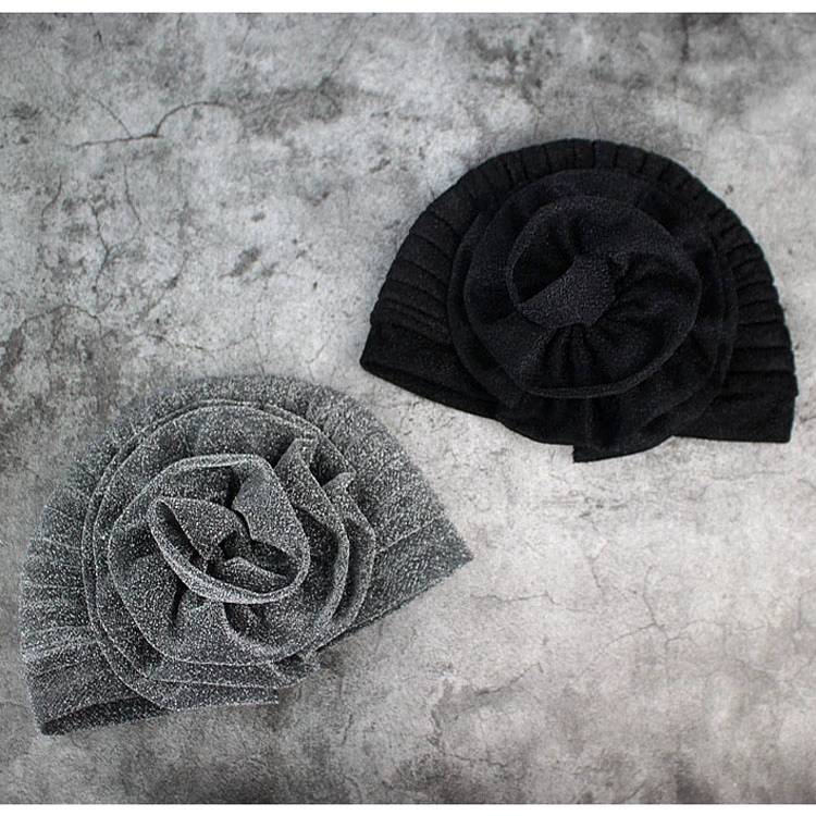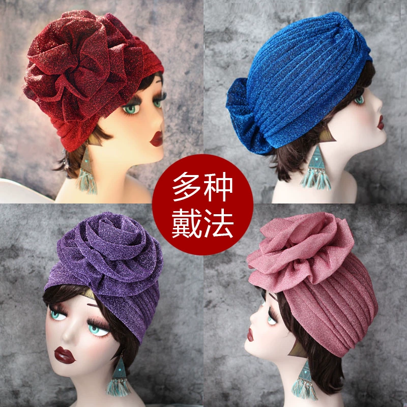 | nameOriginal | European and American retro fashion chic aura headscarf hat temperament shiny silk flower pleated Baotou hat flower hair cover |