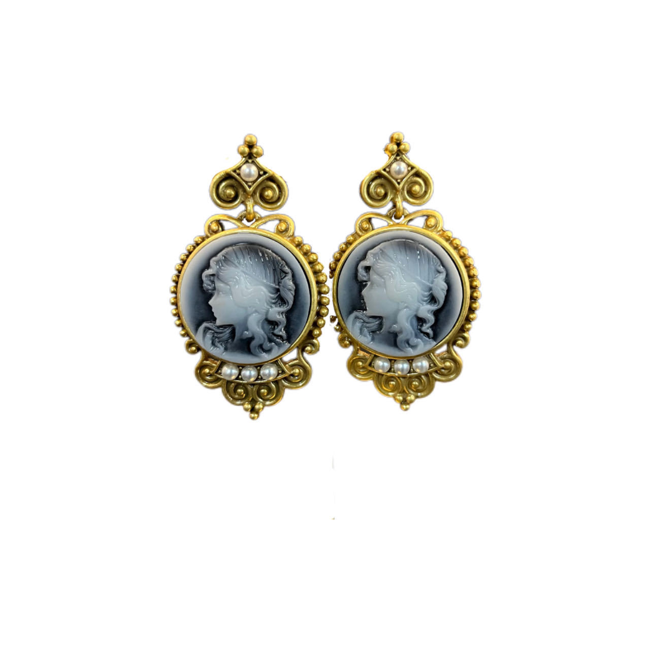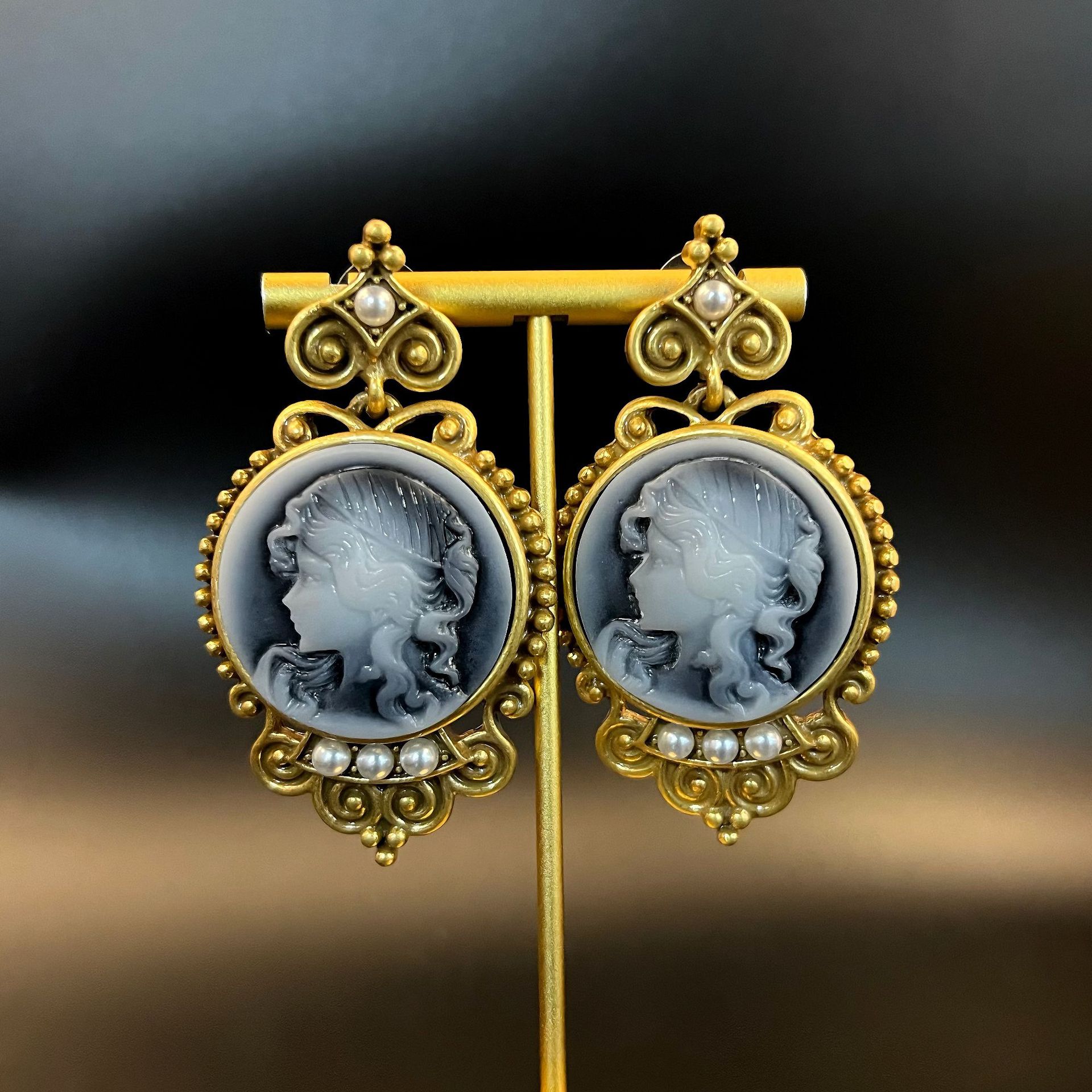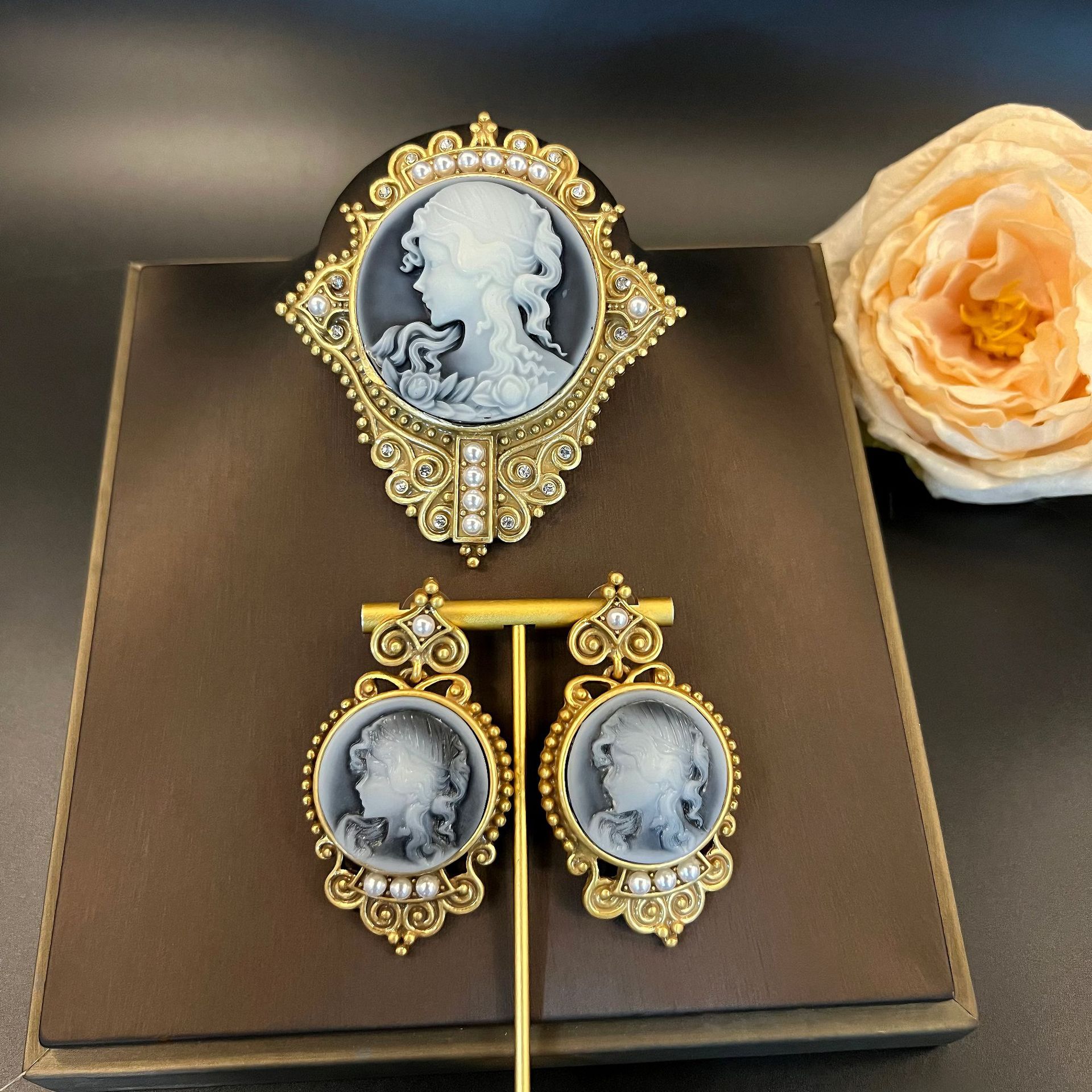 | nameOriginal | European and American Retro High-grade Heavy Industry Embossed Cameo Brooch Earrings Palace Fashion Diamond Pearl Beauty Head suit |