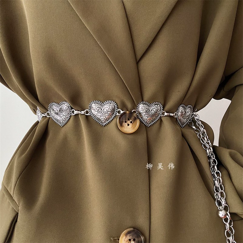 | nameOriginal | European and American retro love women's silver metal suit waist chain |