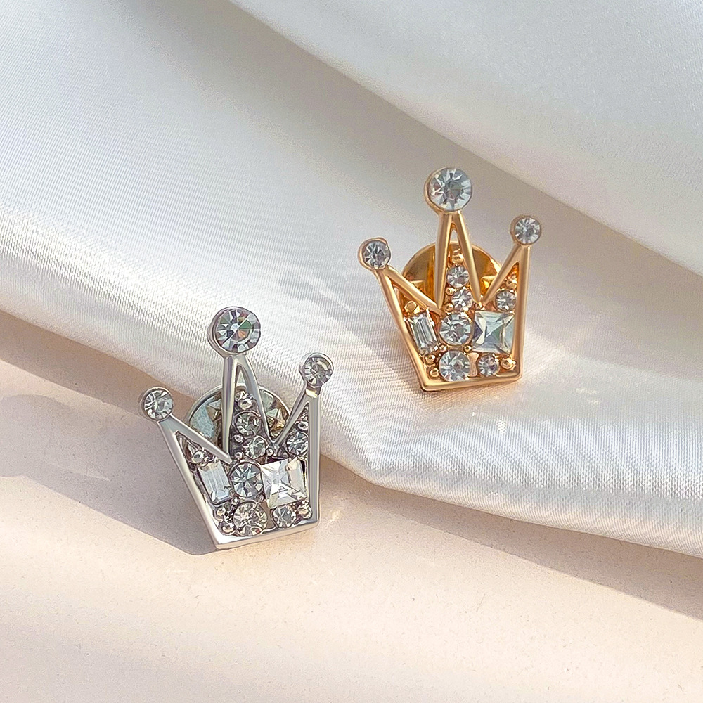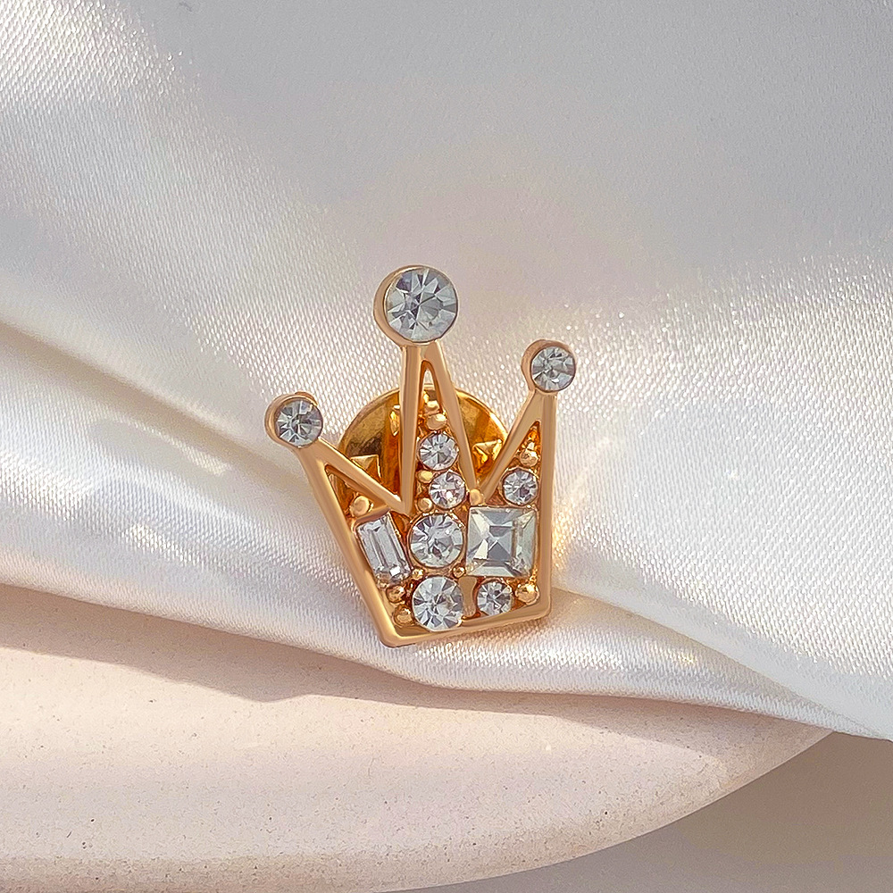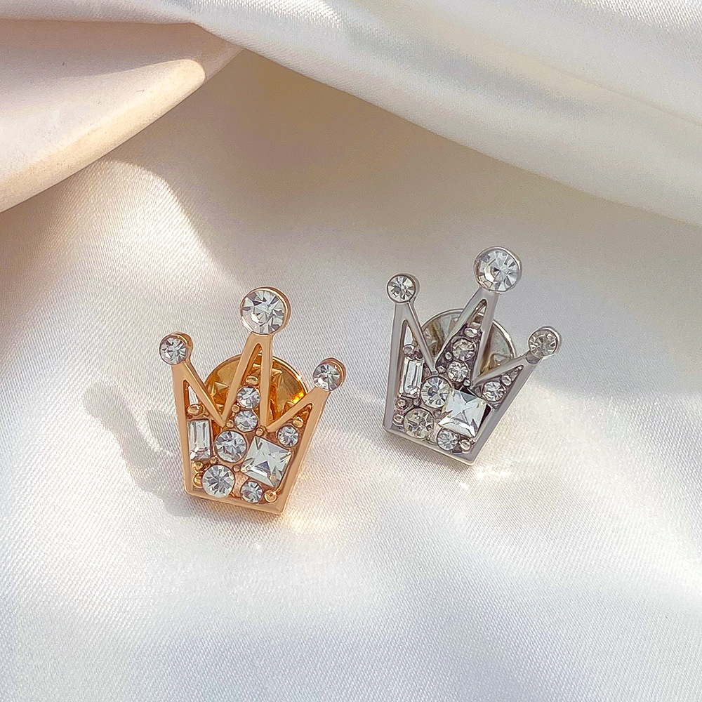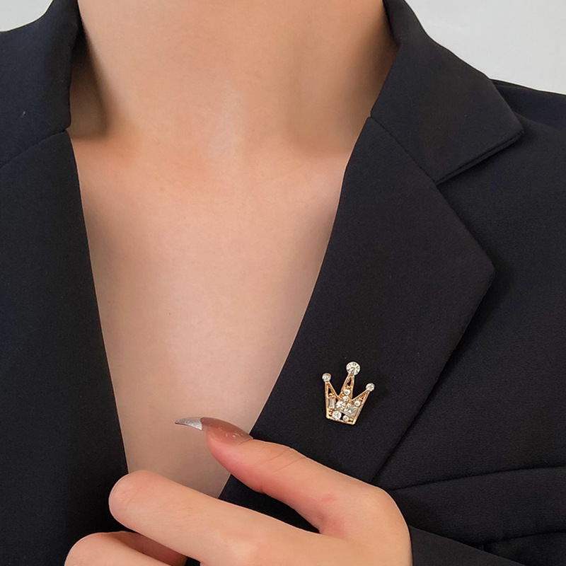 European and American Retro Micro-inlaid Zircon Crown Brooch ins Fashionable Elegant Clothes Corsage Pin Simple Decorative Collar Pin